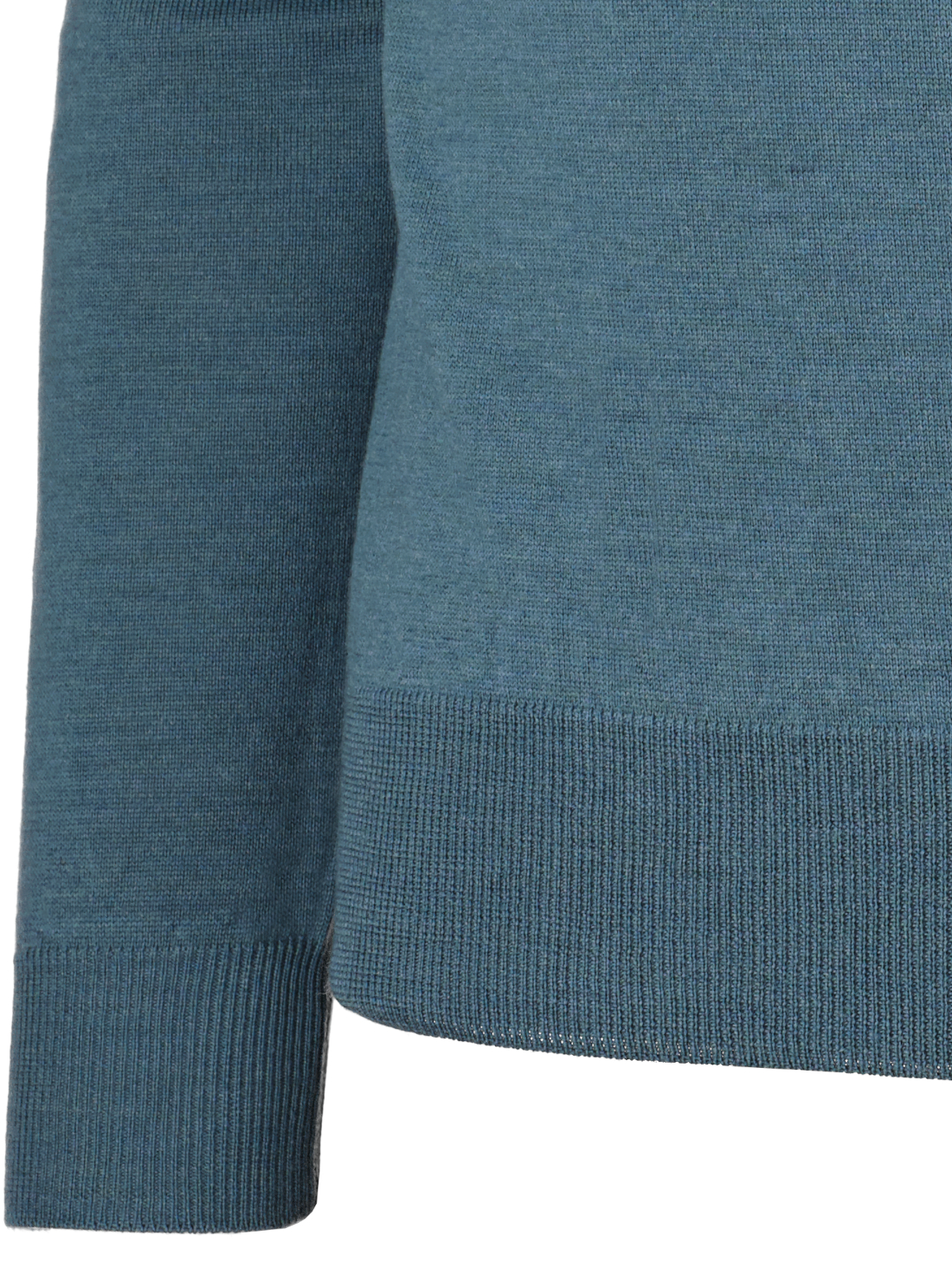 Blauwe polo met lange mouwen voor heren van Aurélien. De trui heeft een slim fit pasvorm. Deze trui is handgemaakt in Italië van het ultra luxe Cashwool ®.