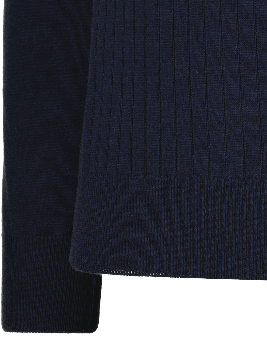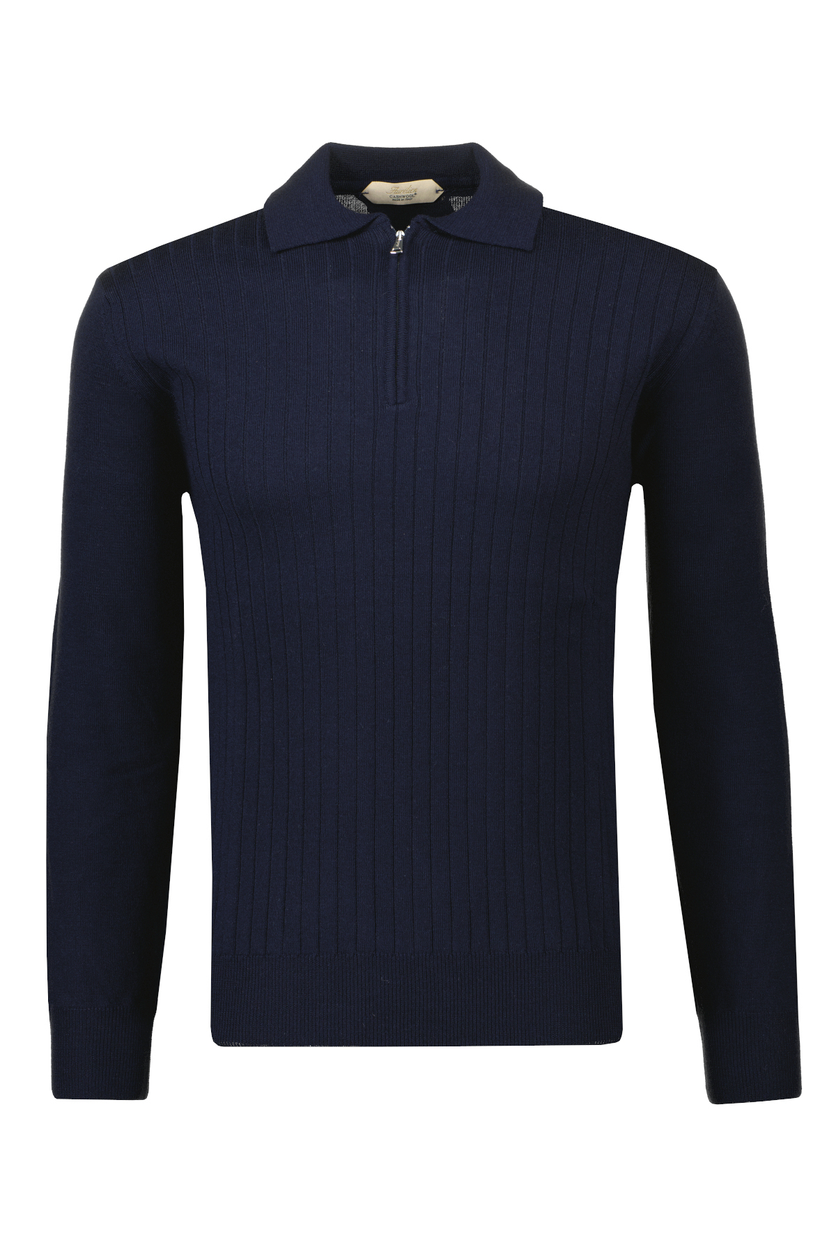 Donkerblauwe polo met lange mouwen model Ribbed Polo voor heren van Aurélien. Deze trui is handgemaakt in Italië van het ultra luxe Cashwool ®.