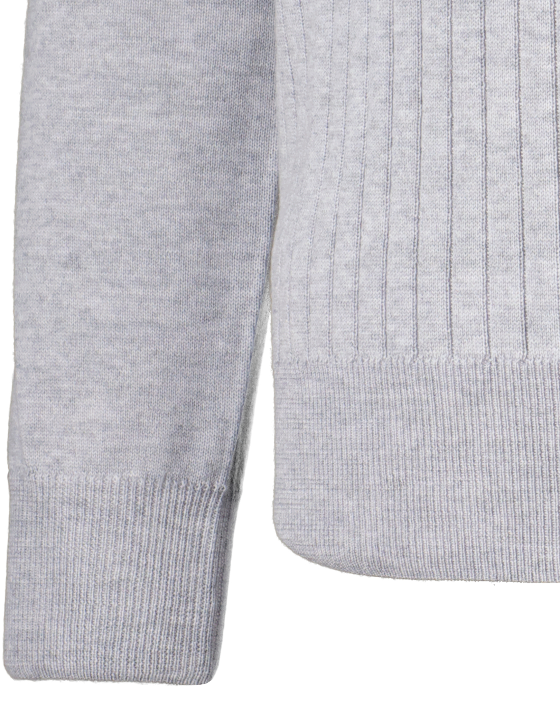 Grijze polo met lange mouwen model Ribbed Polo voor heren van Aurélien. Deze trui is handgemaakt in Italië van het ultra luxe Cashwool ®.