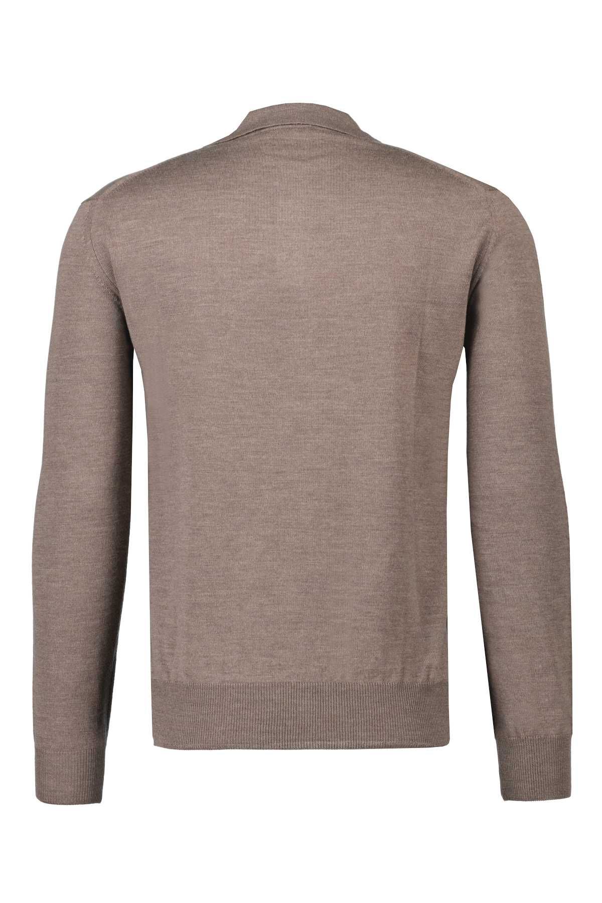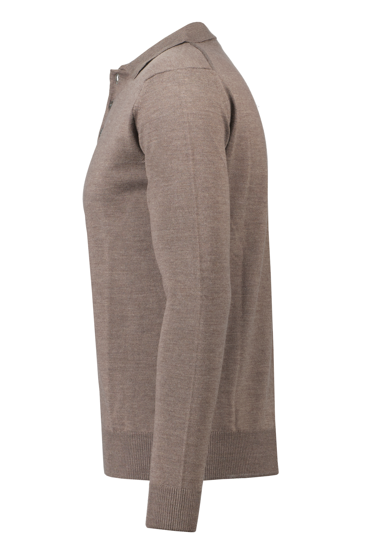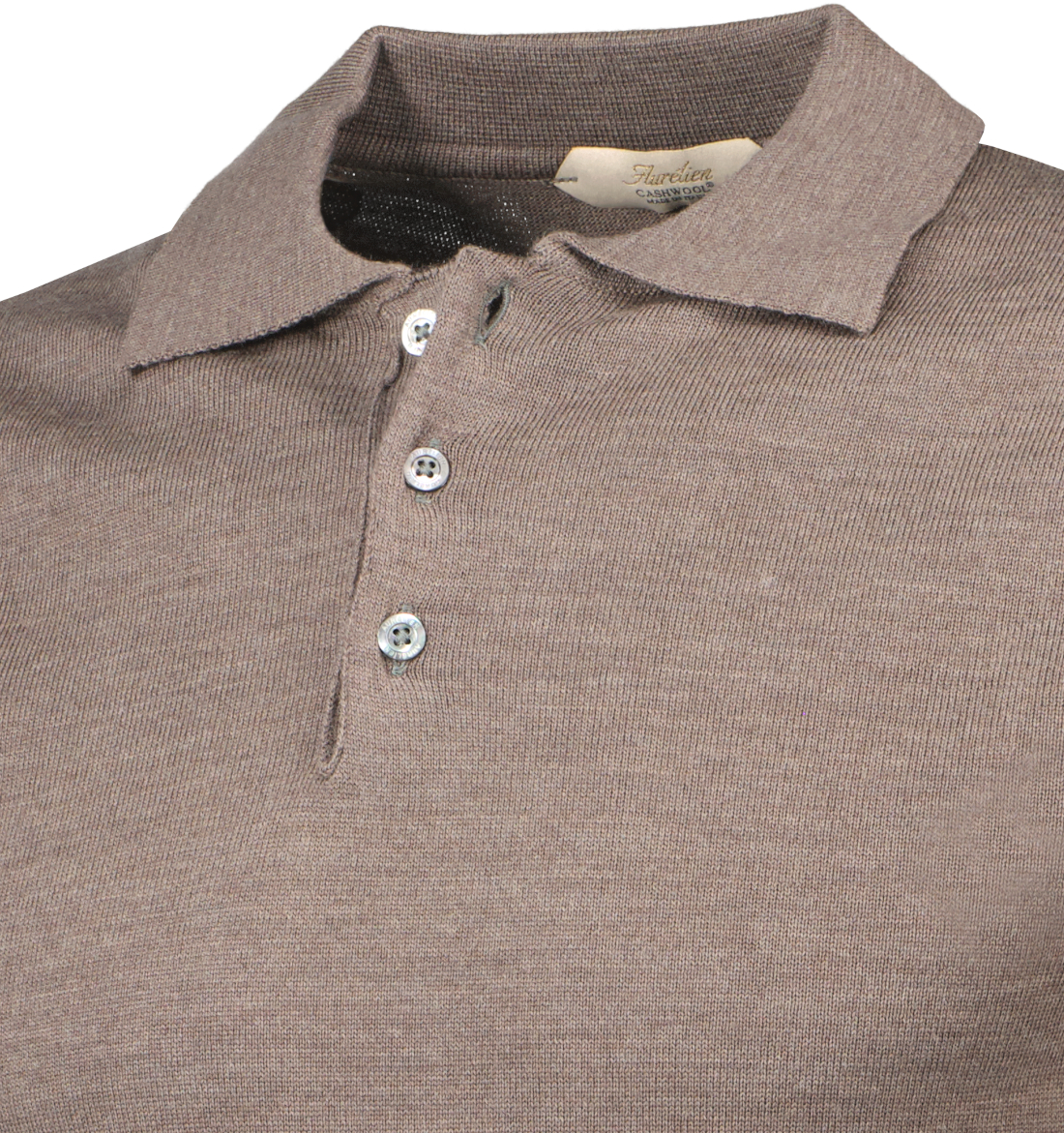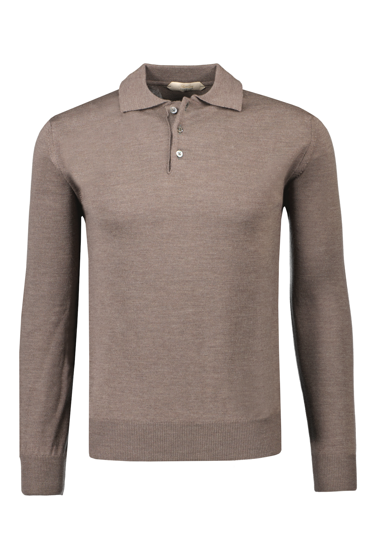 Taupe polo met lange mouwen voor heren van Aurélien. De trui heeft een slim fit pasvorm. Deze trui is handgemaakt in Italië van het ultra luxe Cashwool ®.