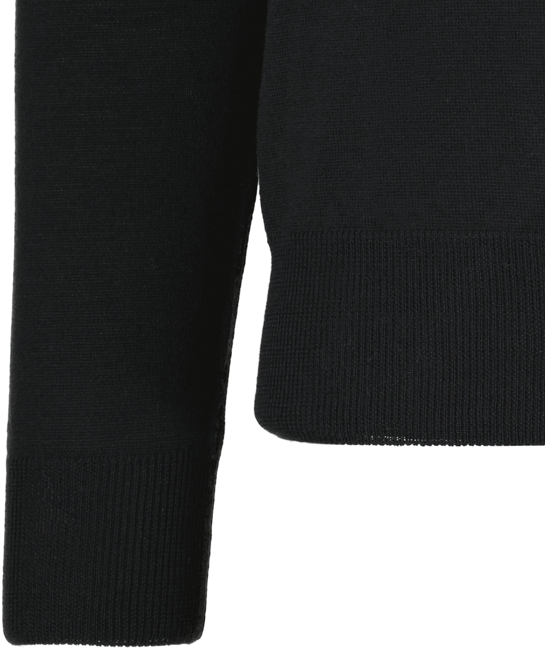 Zwarte polo met lange mouwen model Buttonless Polo voor heren van Aurélien. De trui heeft een slim fit pasvorm. Deze trui is handgemaakt in Italië van het ultra luxe Cashwool ®.