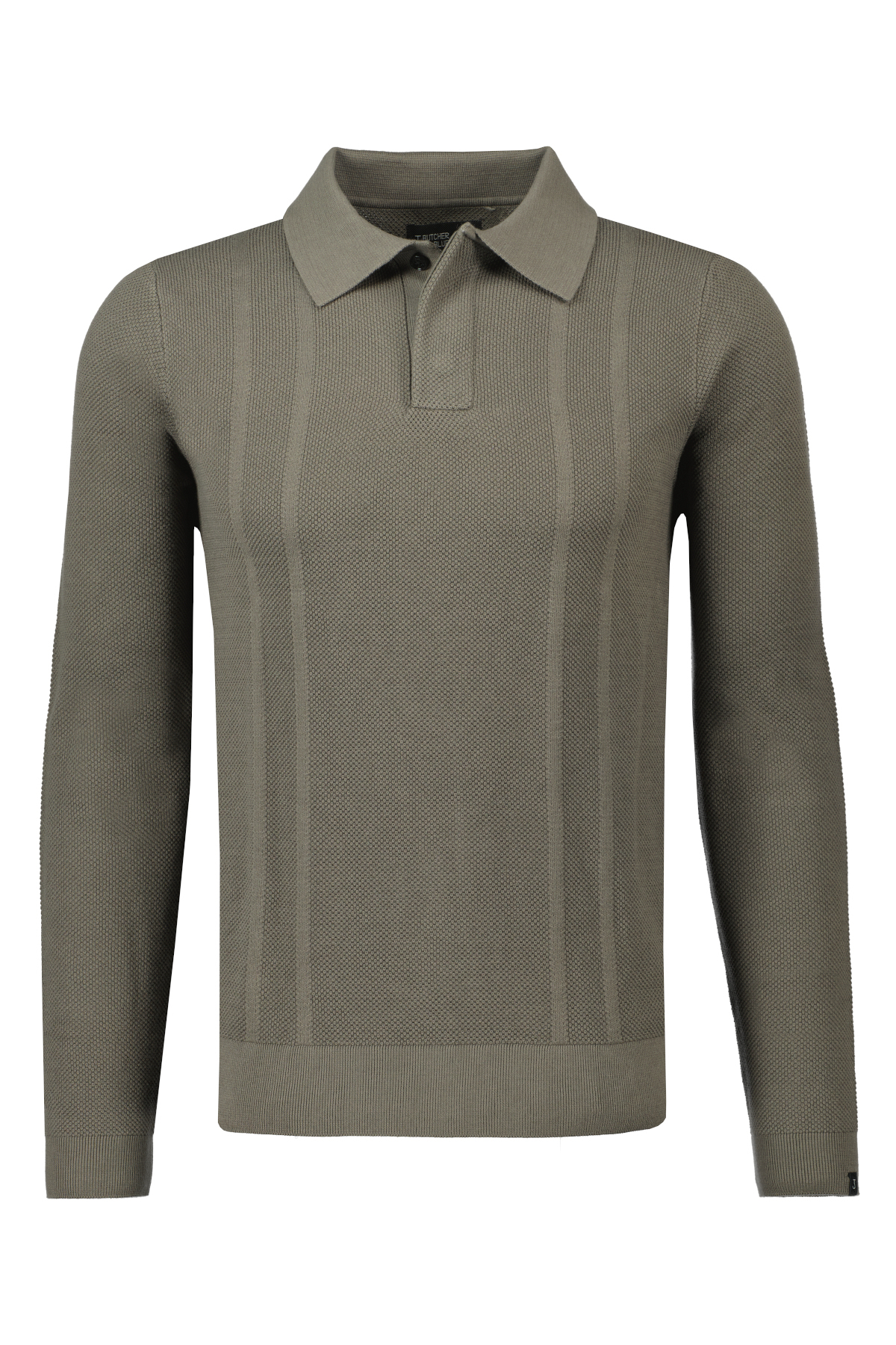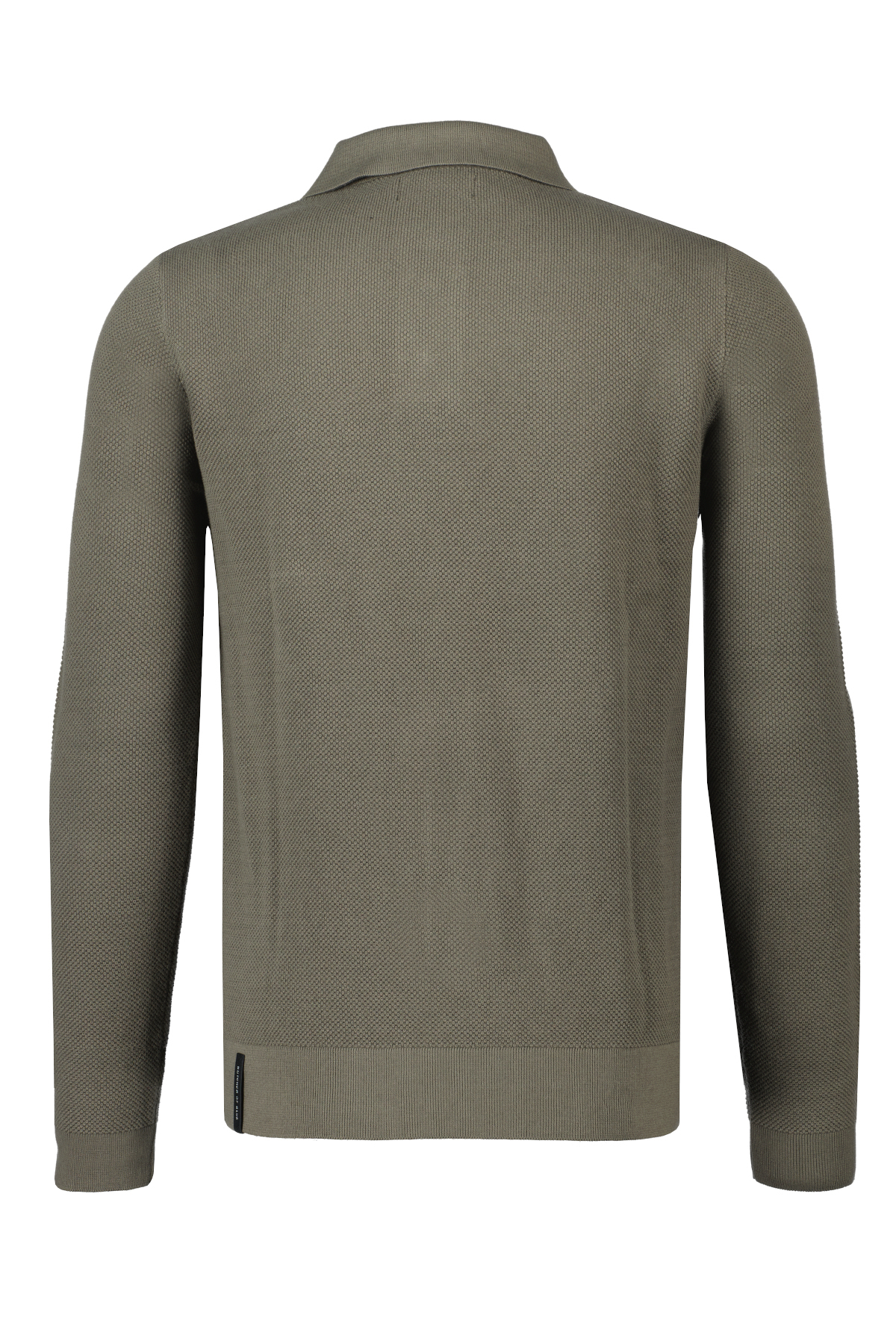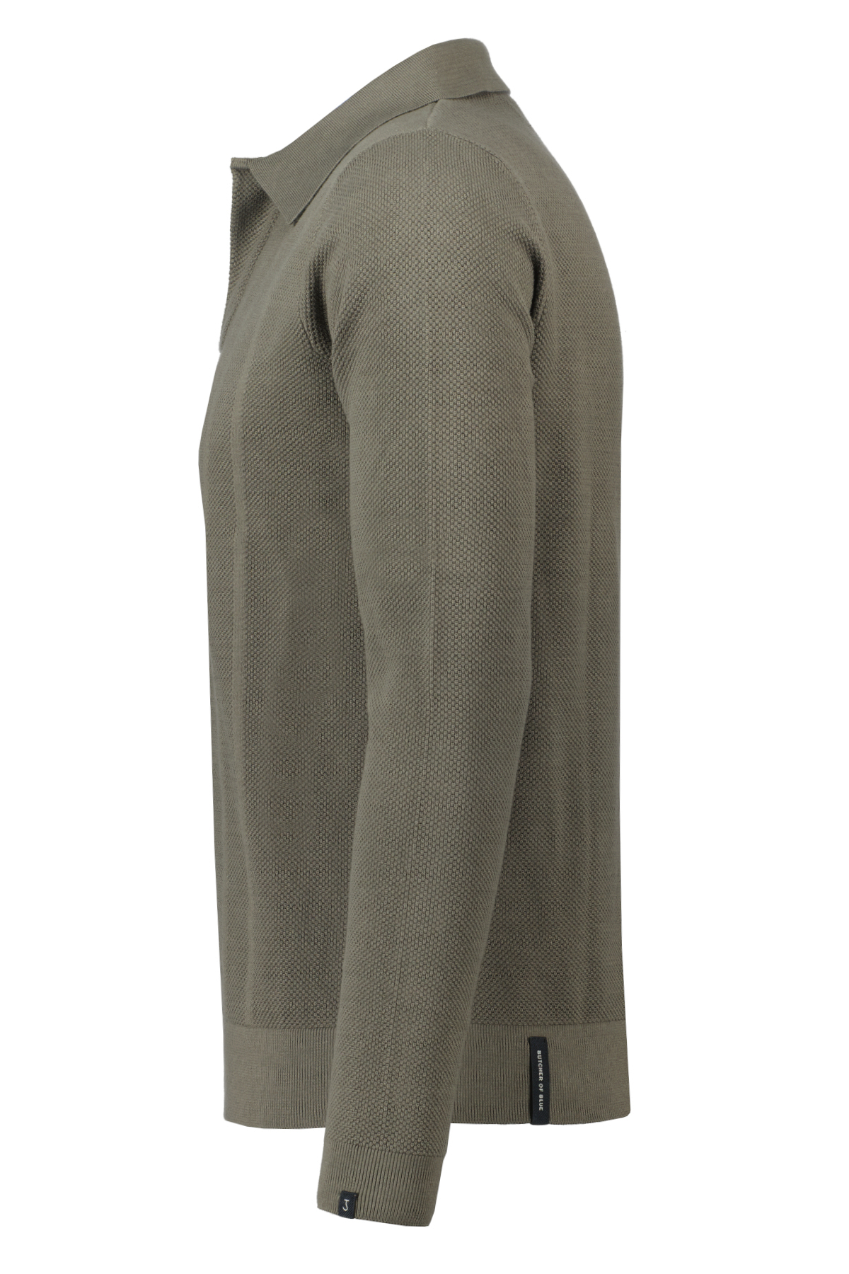 Donkergroene polo voor heren model Ripley Polo van Butcher of Blue. De Ripley is een fijn gebreide polo met een klassieke polokraag met contrasterende verborgen knoopjes, twee verticale strepen aan de voorkant en een subtiel logo label op de linkerarm.