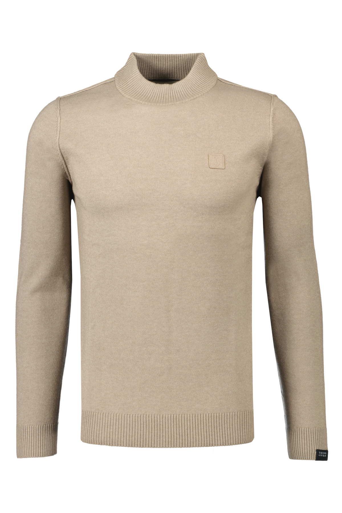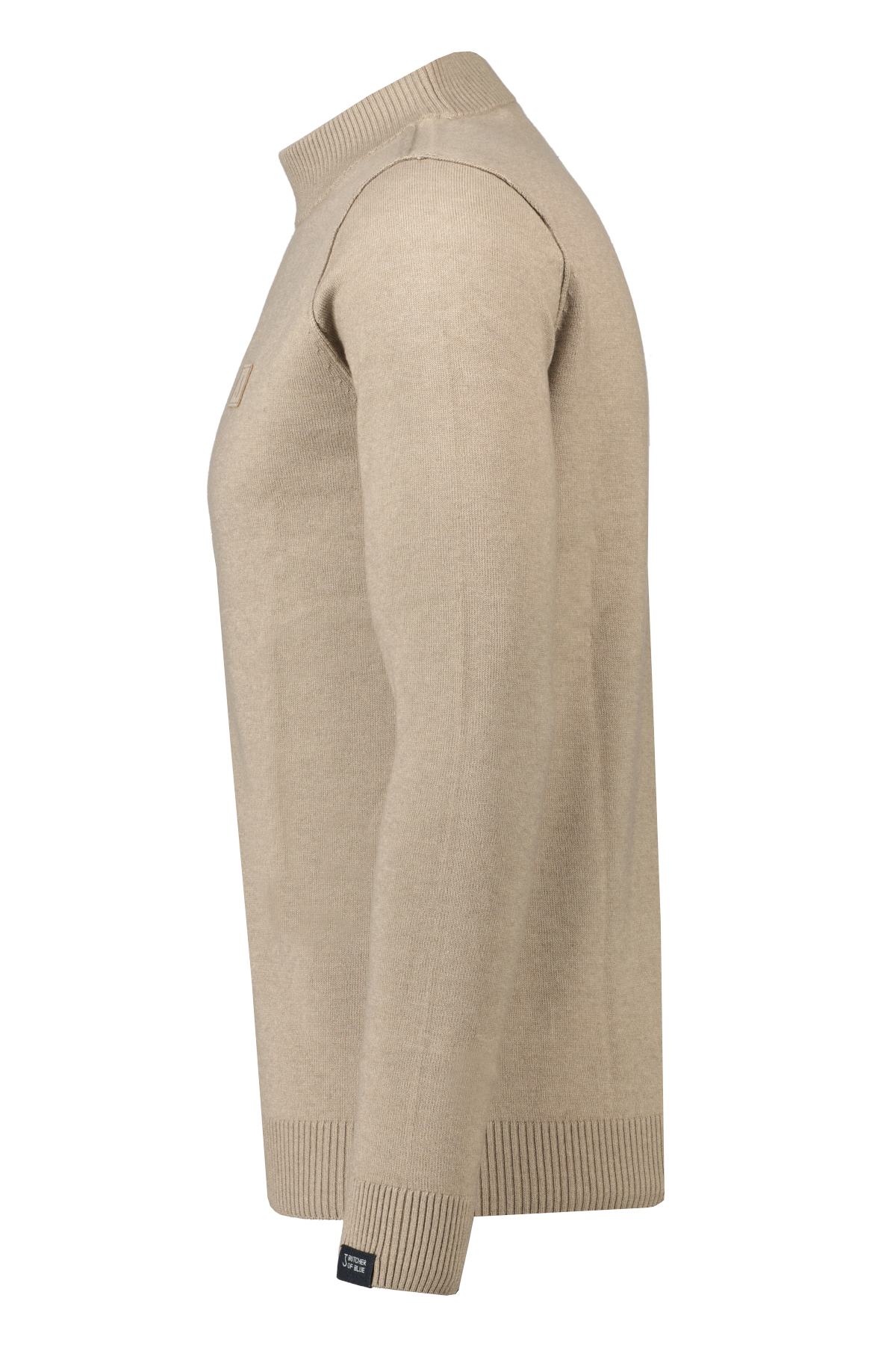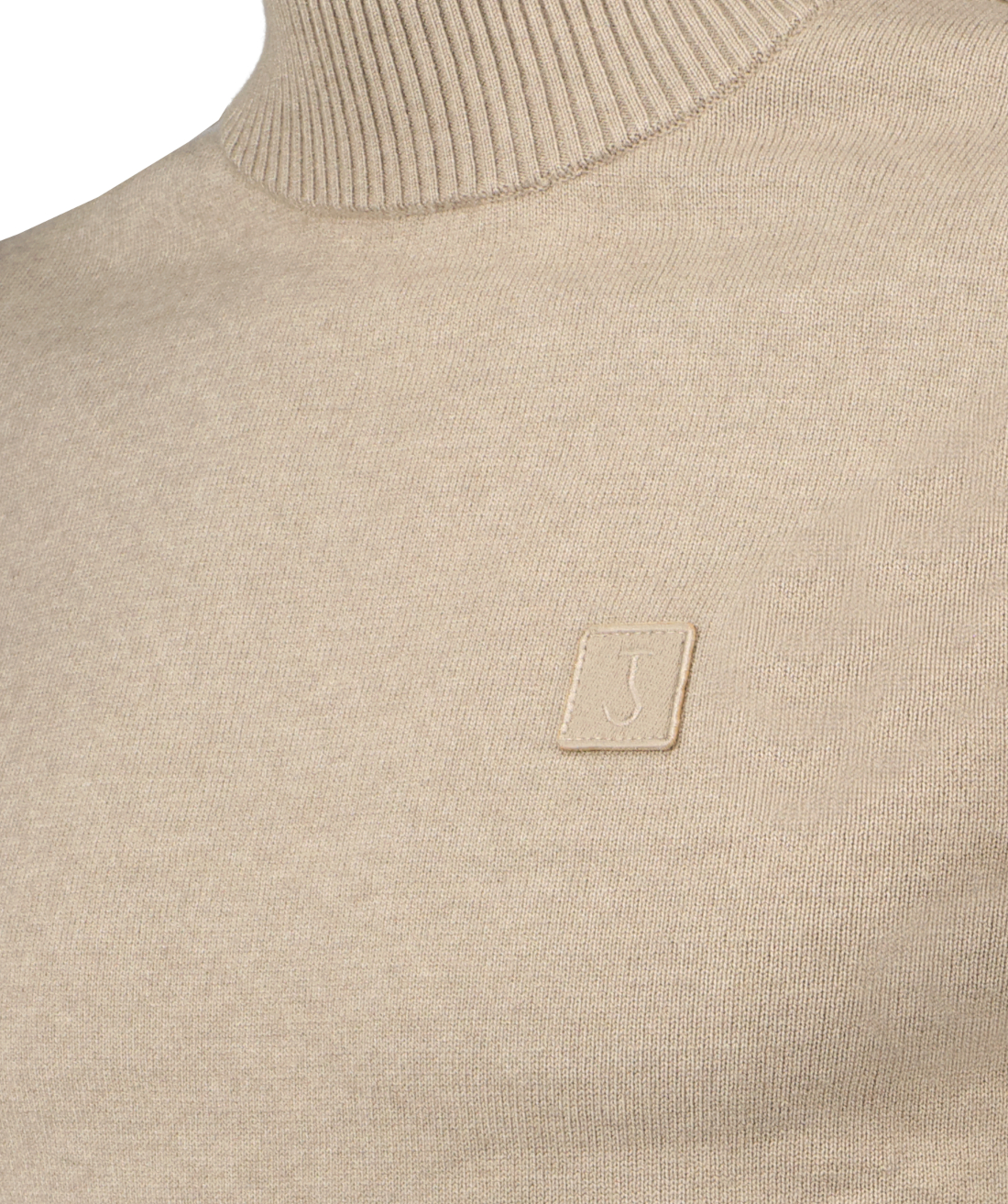 Beige trui voor heren model Clifden Mock van Butcher of Blue. Deze trui heeft een grof geribde mockneck, geribde manchetten en onderband, heeft een ton-sur-ton logobadge op de linkerborst, een subtiel logo label op de linkermouw en komt in regular fit.