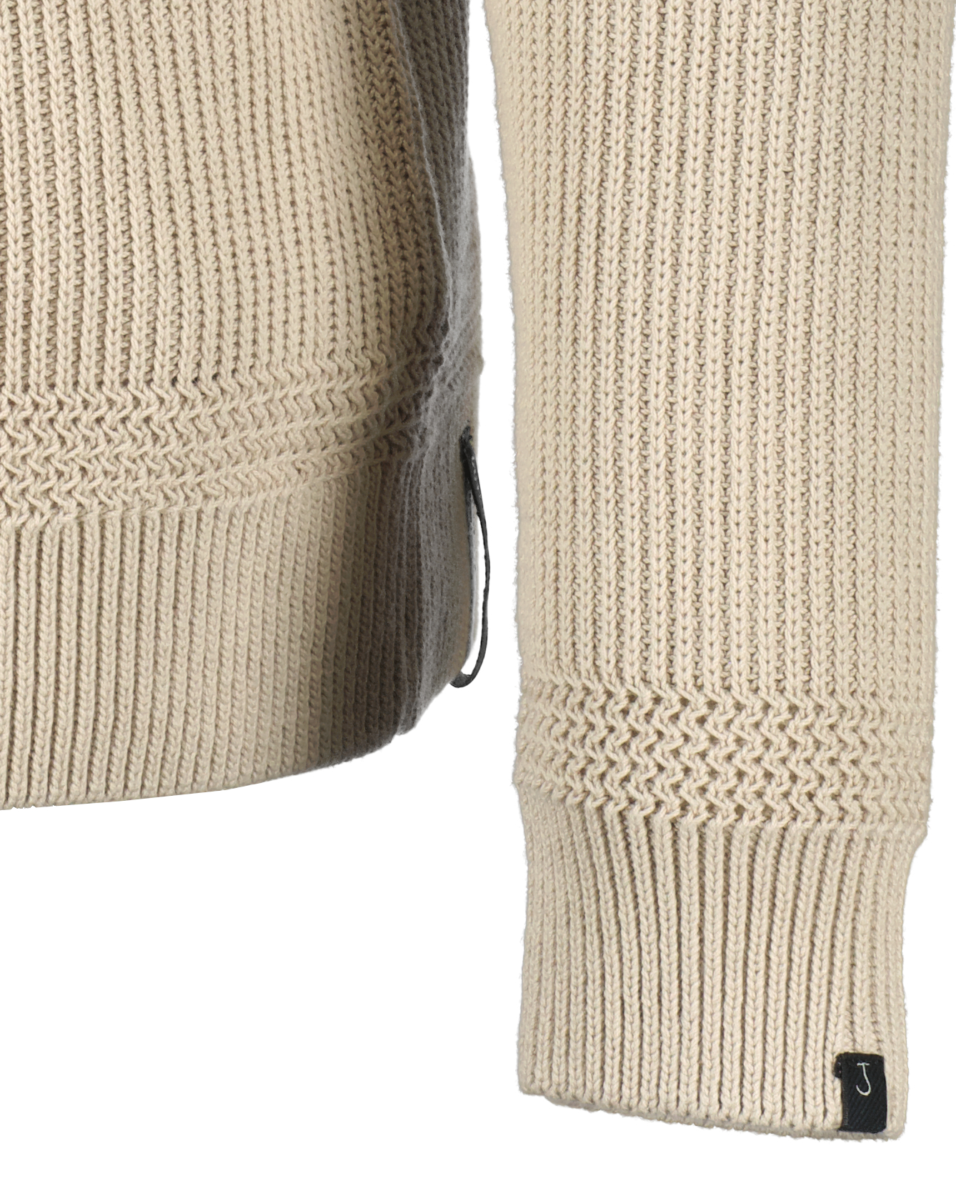 Beige trui met polokraag voor heren model Galway Polo van Butcher of Blue. De Galway is een grof gebreide, van 100% katoen gemaakte trui met geribde hals, manchetten en onderband, heeft een subtiel logo label op de linkermouw en valt iets ruimer dan regular fit.