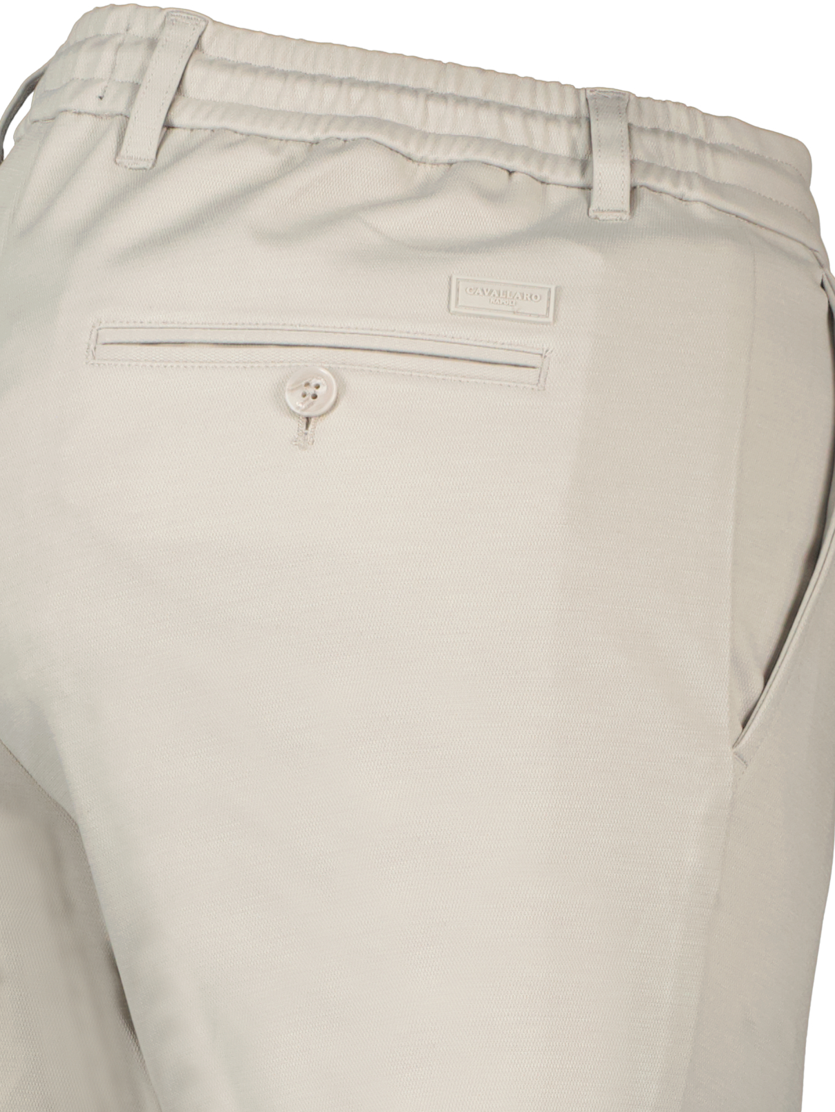 Beige/grijze broek voor heren model Zeradino van Cavallaro Napoli. De Zeradino is gemaakt van een hoogwaardige blend van bamboe en elastaan, is voorzien van zowel een knoopsluiting als een trekkoordsluiting, heeft steekzakken aan de voorzijde en paspelzakken aan de achterzijde en heeft een ton-sur-ton logobadge. Combineer de Zedenio broek met het bijpassende overshirt voor een complete en stijlvolle set.