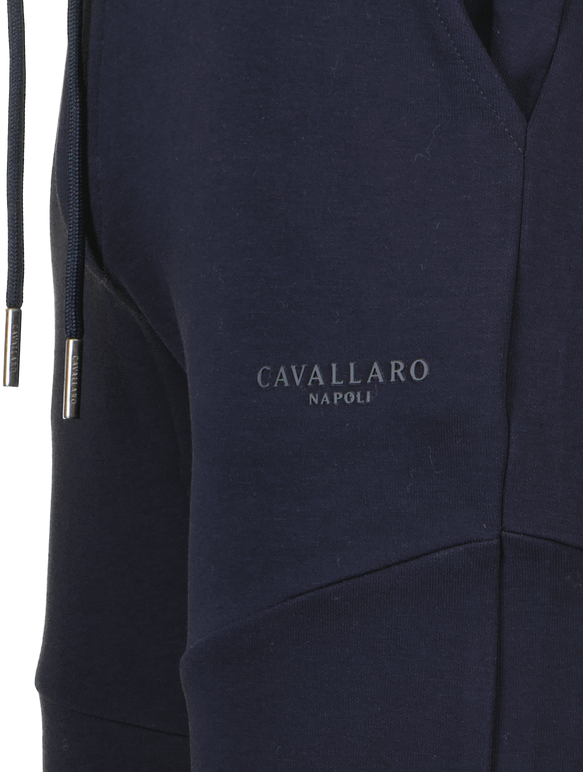 Donkerblauwe joggingsbroek voor heren model Sanago Jogger van Cavallaro Napoli. De Sanago is gemaakt van een sportkwaliteit met katoen en stretch, heeft een regular fit, drawstring sluiting, steekzakken en ton-sur-ton logo. Combineer de jogger met de bijpassende sweater.