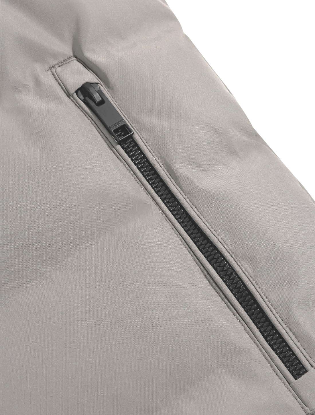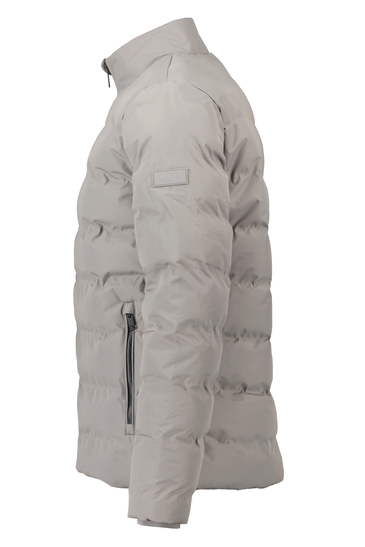 Grijze jas voor heren model Cesario van Cavallaro Napoli. De Cesario heeft een regular fit, is gemaakt van waterafstotend en windproof materiaal, is gewatteerd, heeft een contrast ritssluiting, steekzakken met ritssluiting en fleece voering, een binnenzak met ritssluiting en heeft een ton-sur-ton rubber logo.