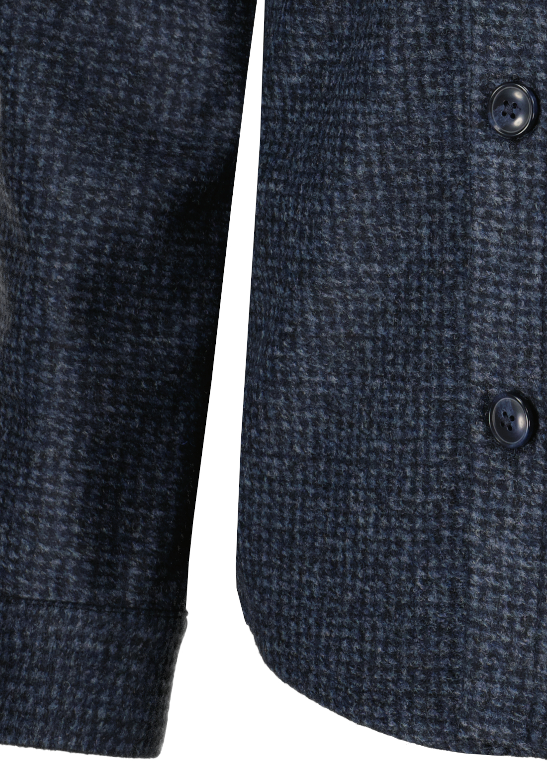 Donkerblauw overshirt voor heren uit de Platinum collectie model Elisio van Cavallaro Napoli. De Elisio is gemaakt van hoogwaardige scheerwol, heeft een subtiel ruitdessin, is voorzien van een klassieke knoopsluiting en opgestikte klepzakken met knoopsluiting en heeft een regular fit.