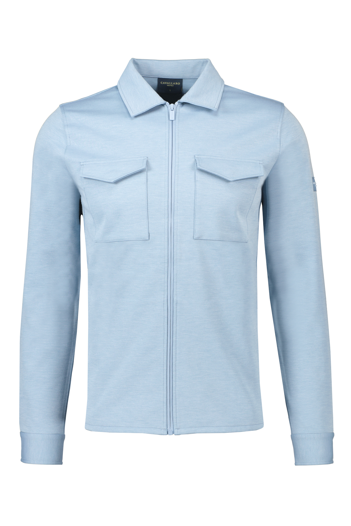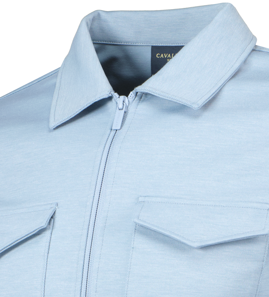 Lichtblauw overshirt voor heren model Zaverio van Cavallaro Napoli. De Zaverio is gemaakt van een bamboeblend en lichte stretch, heeft borstzakken met drukknopen, steekzakken met meshvoering, regular fit, ton-sur-ton ritssluiting en een ton-sur-ton logo badge op de linkermouw.