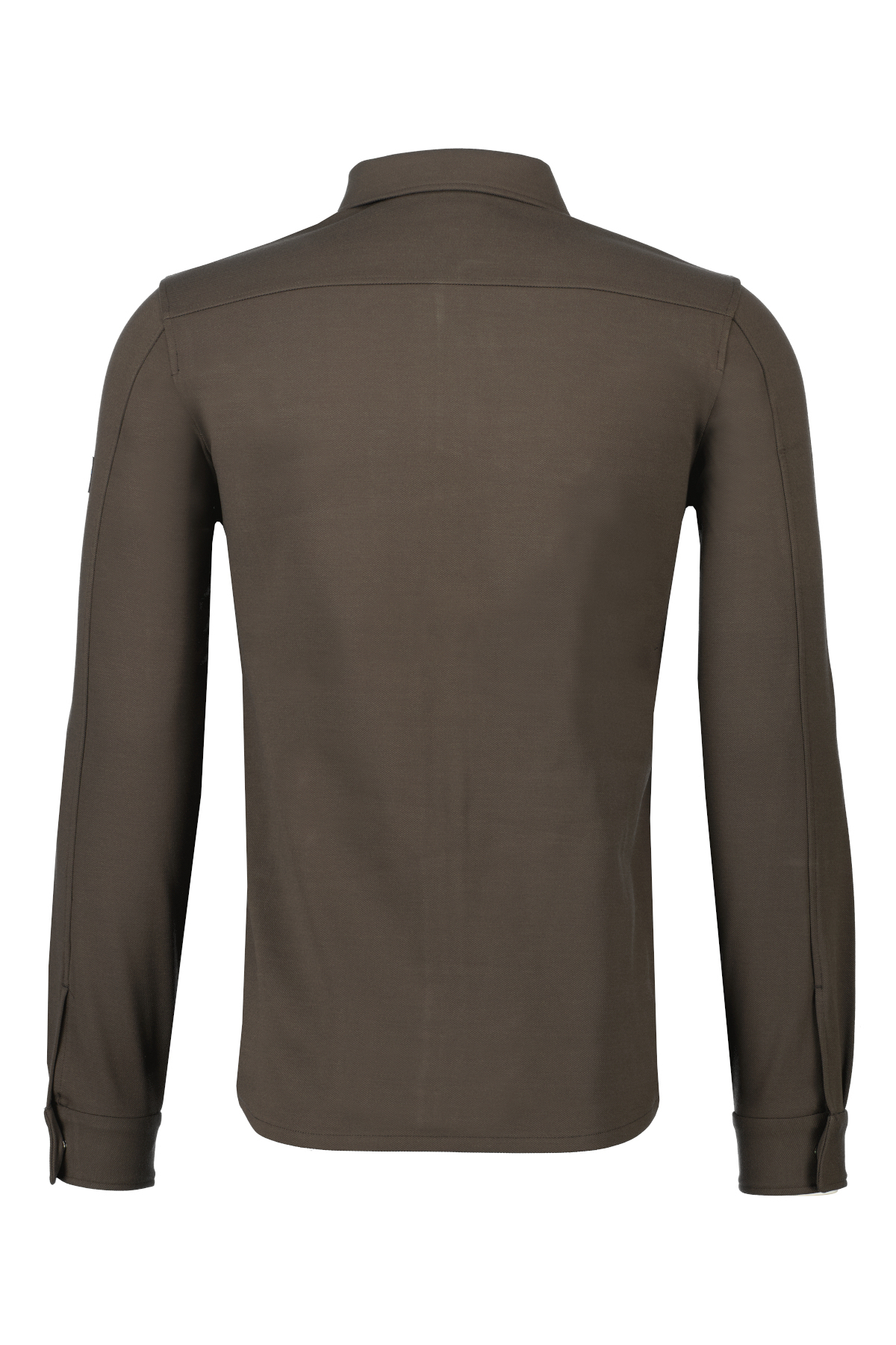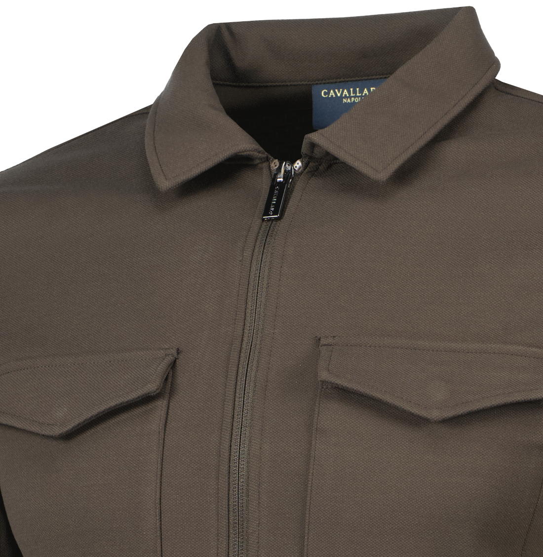 Bruin overshirt voor heren model Zerino van Cavallaro Napoli. De Zerino is gemaakt van een bamboeblend en lichte stretch, heeft borstzakken met drukknopen, steekzakken met meshvoering, regular fit, ton-sur-ton ritssluiting en een ton-sur-ton logo badge op de linkermouw.