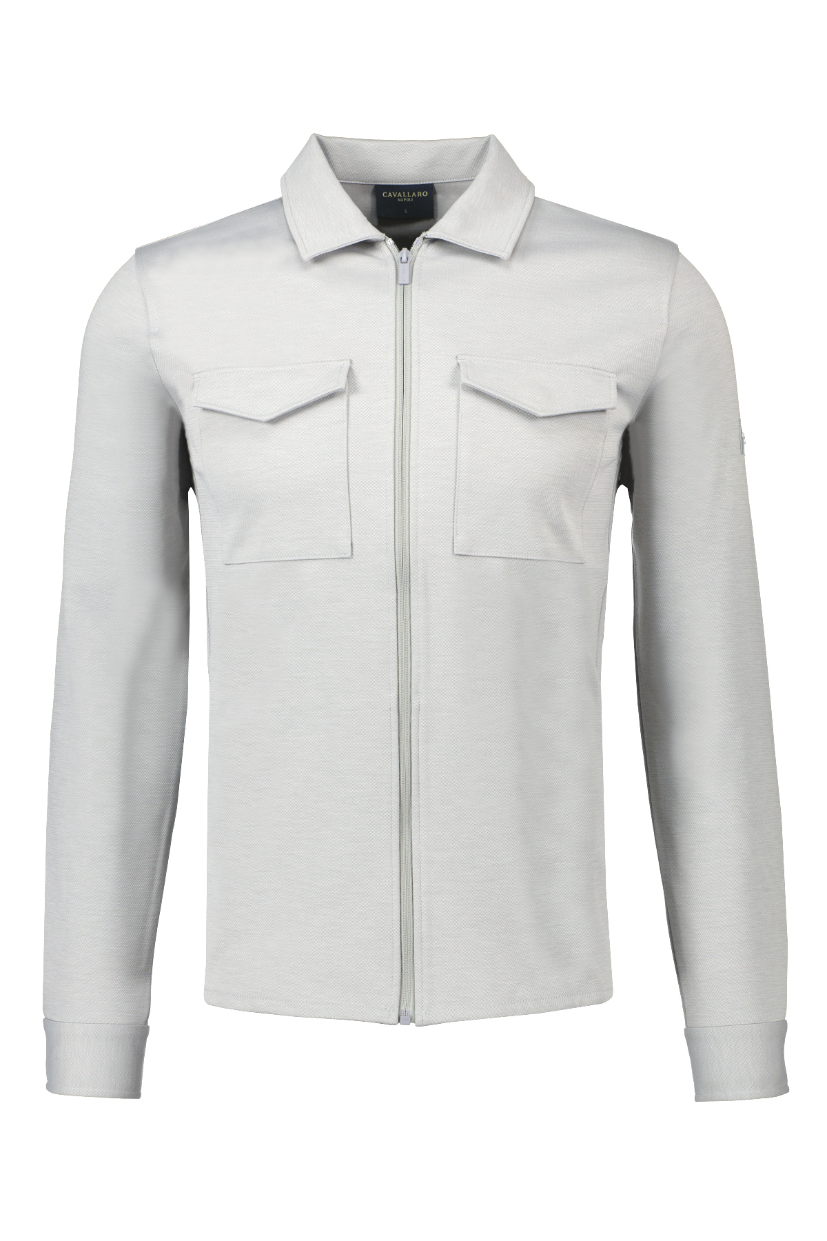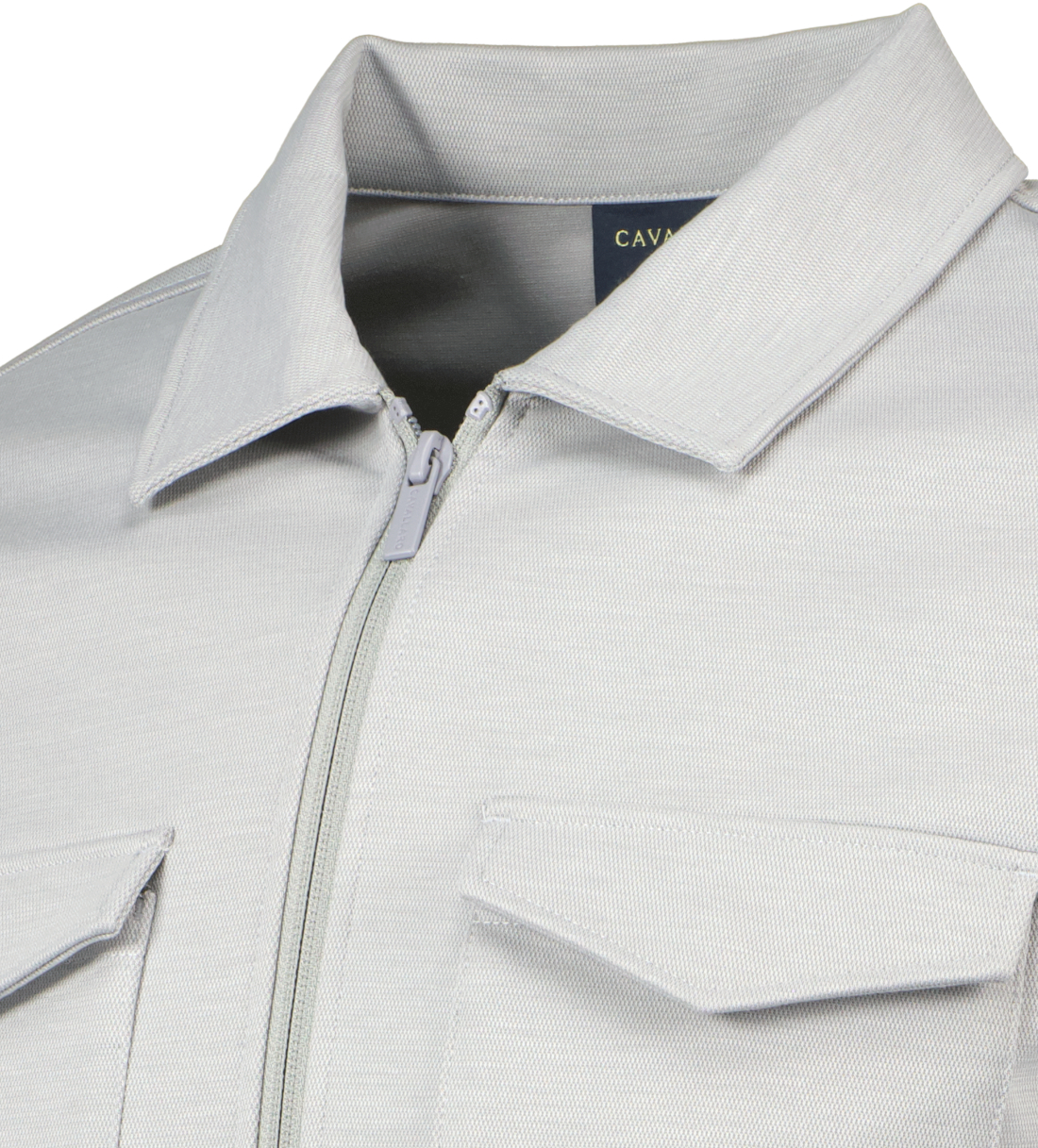 Grijs overshirt voor heren model Zaverio van Cavallaro Napoli. De Zaverio is gemaakt van een bamboeblend en lichte stretch, heeft borstzakken met drukknopen, steekzakken met meshvoering, regular fit, ton-sur-ton ritssluiting en een ton-sur-ton logo badge op de linkermouw.