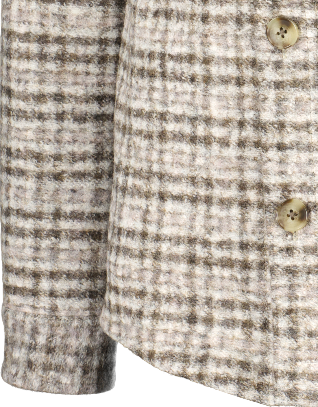 Taupe met wit geruit overshirt voor heren model Fabrio van Cavallaro Napoli. Het Fabiro overshirt is vervaardigd uit een hoogwaardige blend van scheerwol en katoen, heeft een ongevoerd ontwerp, heeft een knoopsluiting, opgestikte klepzakken met knoopsluiting en valt regular fit.