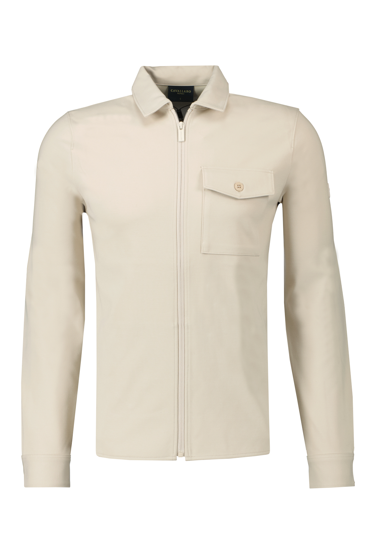 Lichtbeige overshirt voor heren model Zelo van Cavallaro Napoli. De Zelo is gemaakt van een hoogwaardige bamboeblend met stretch, heeft een ritssluiting, een borstzak met knoopsluiting en valt in regular fit.
