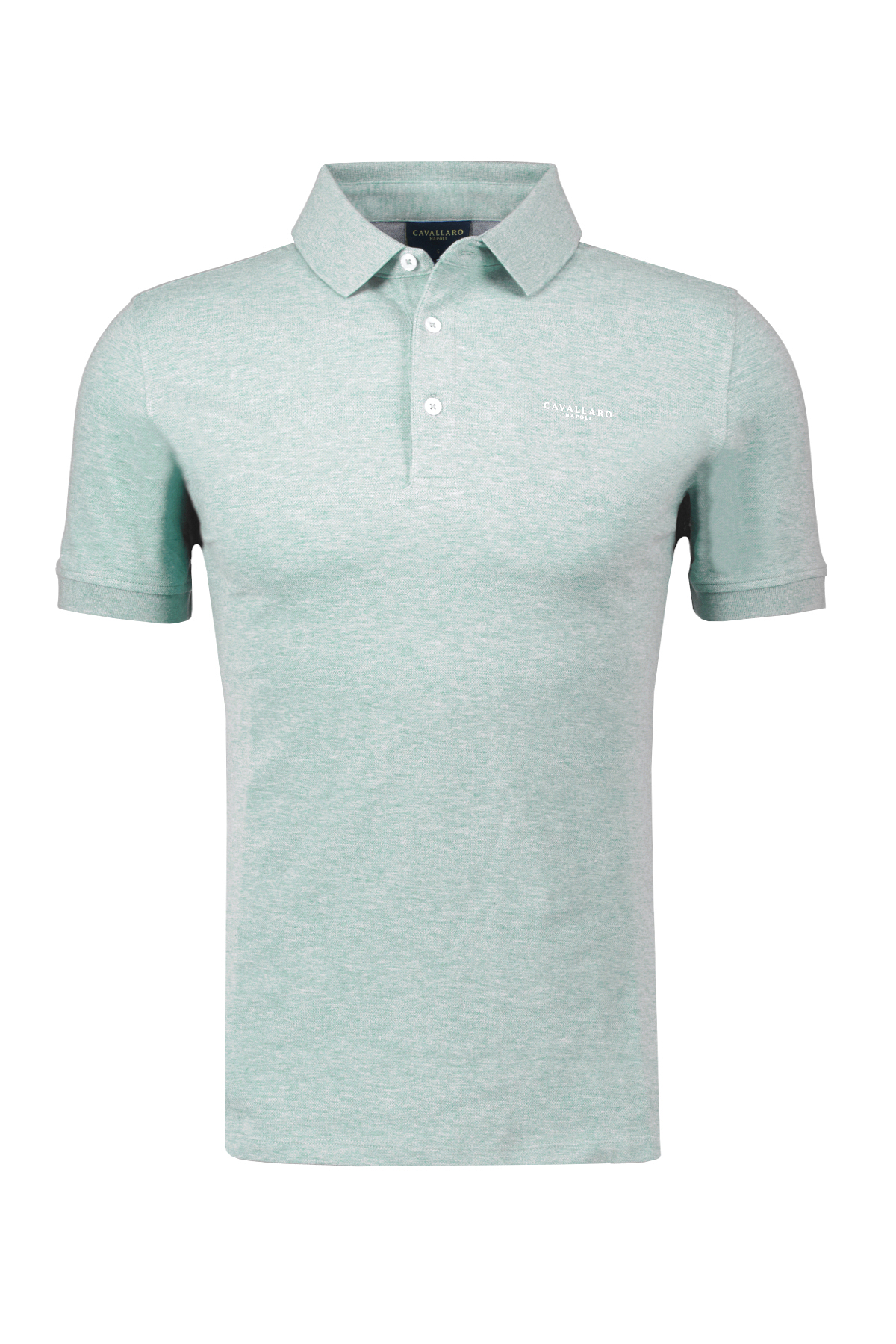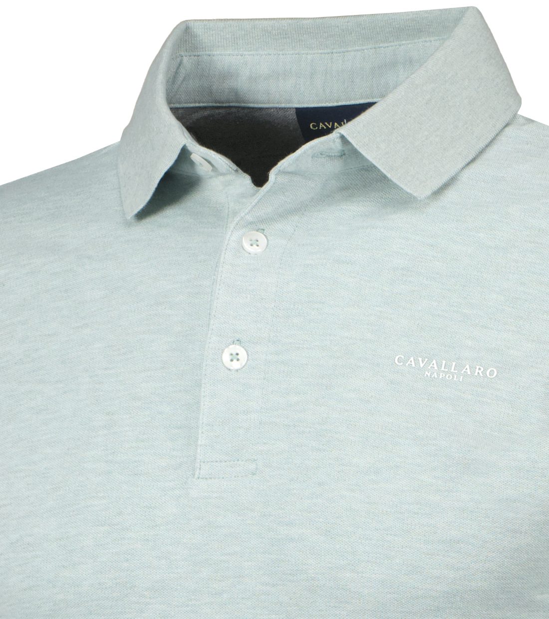 Lichtgroen gemêleerde polo voor heren model Bavone Polo van Cavallaro Napoli. De Bavone is gemaakt van hoogwaardig organisch katoen met een vleugje elastaan, heeft een wit opgedrukt logo op de borst, heeft een klassieke polokraag met drie parelmoer knoopjes, korte mouwen en een aangesloten fit.