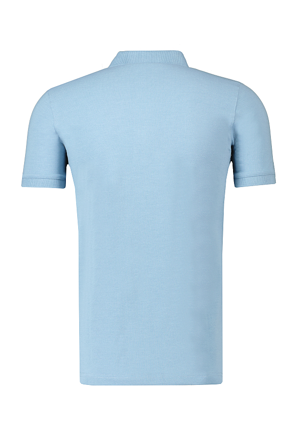 Lichtblauwe polo voor heren model Neapolis van Cavallaro Napoli. De Neapolis heeft een klassieke polokraag met drie knoopjes, korte mouwen, een contrasterend 3D logo en is gemaakt van een hoogwaardige katoenblend.