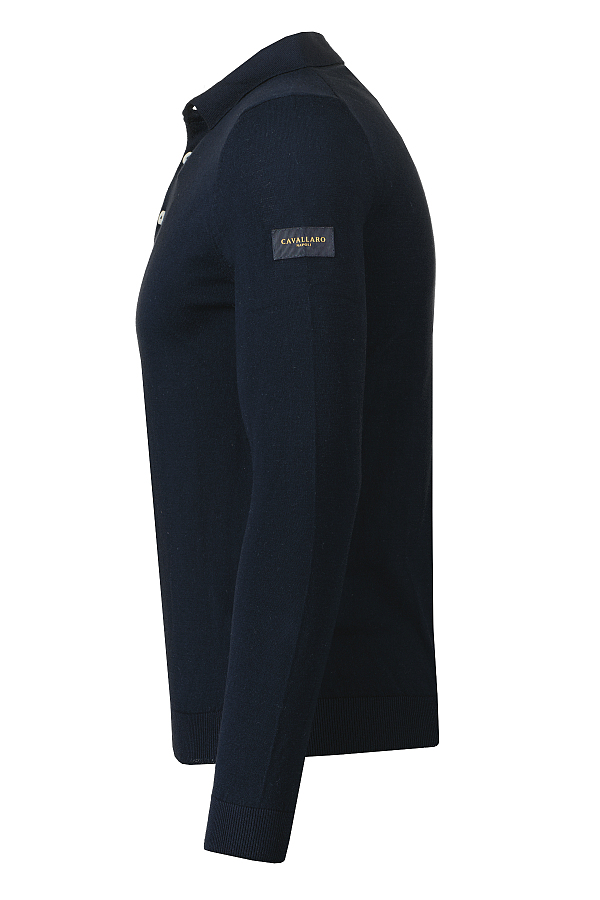 Donkerblauwe polo met lange mouwen model Sorrentino van Cavallaro Napoli. De Sorrentino is gemaakt van 100% organisch katoen, heeft een regular fit, klassieke polokraag en een subtiel logo badge op de linkermouw.