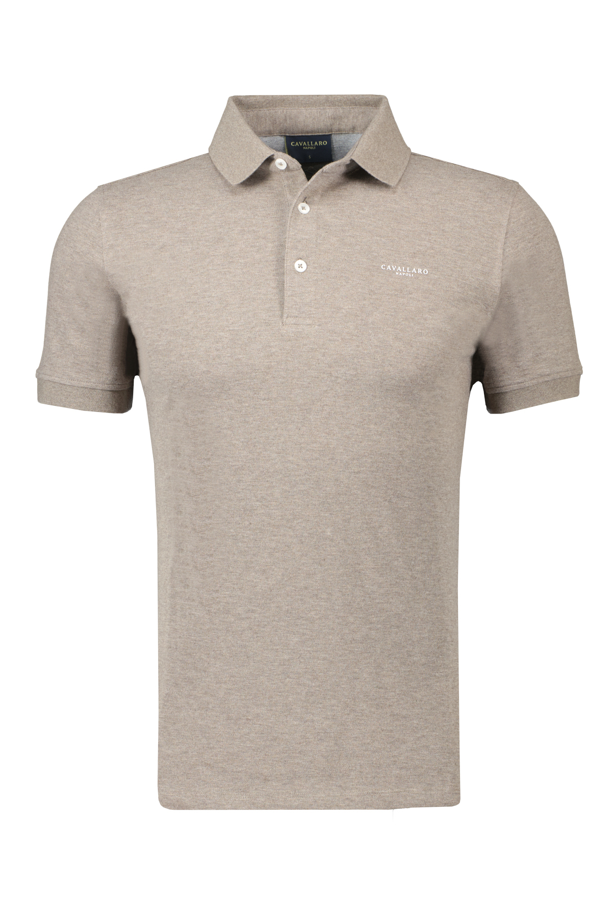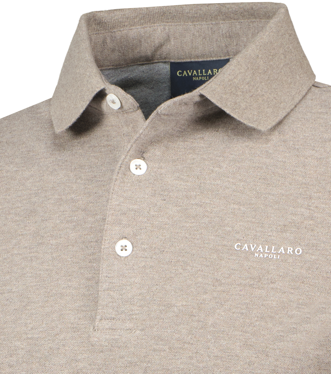 Donker taupe gemêleerde polo voor heren model Bavone Polo van Cavallaro Napoli. De Bavone is gemaakt van hoogwaardig organisch katoen met een vleugje elastaan, heeft een wit opgedrukt logo op de borst, heeft een klassieke polokraag met drie parelmoer knoopjes, korte mouwen en een aangesloten fit.