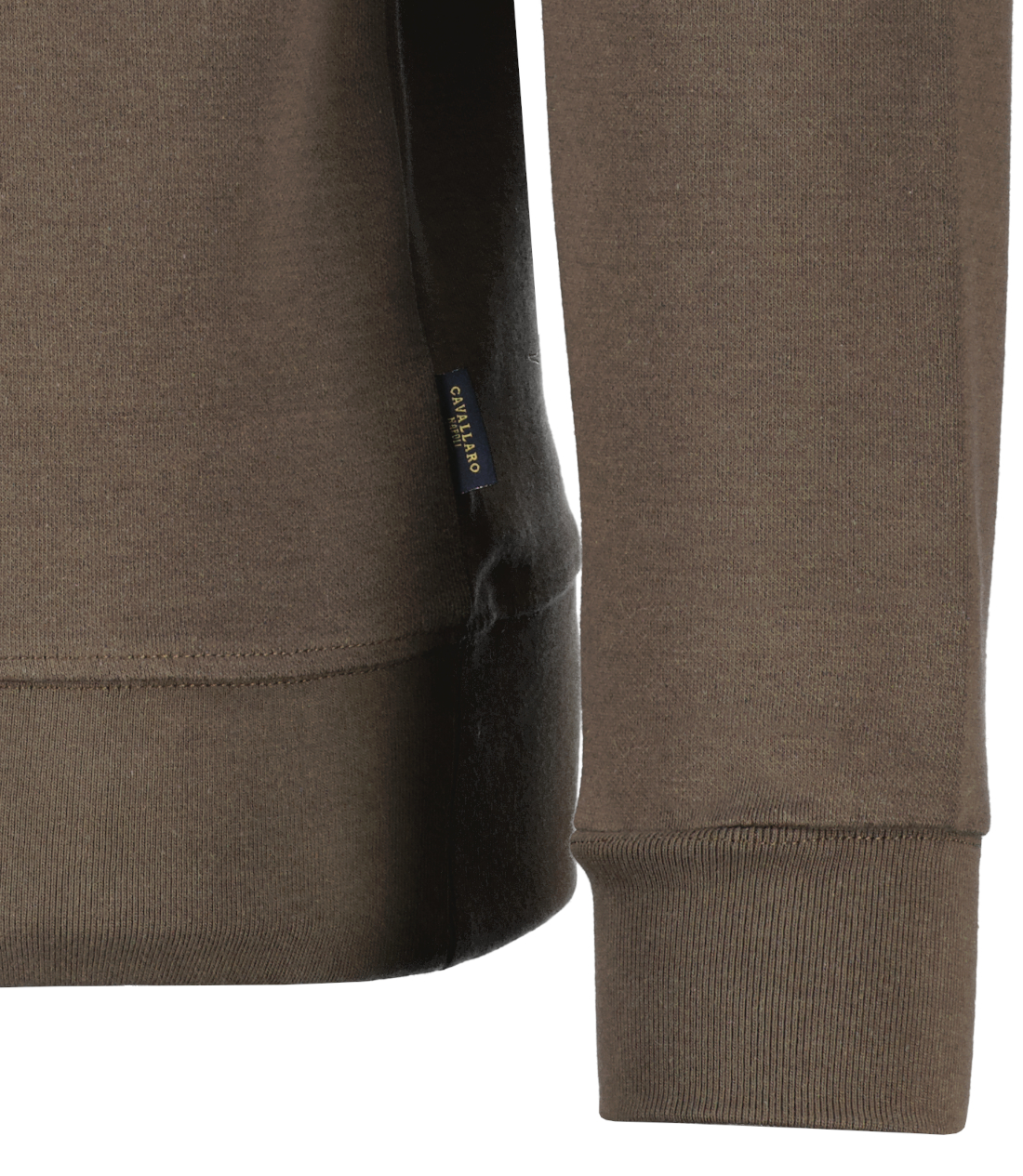 Bruine half-zip sweater voor heren model Marcio Half Zip van Cavallaro Napoli. De Marcio Half Zip valt regular fit, is gemaakt van een hoogwaardige katoenblend met elastaan, is afgewerkt met een ton-sur-ton rubber logo op de borst en een logo badge op de mouw.