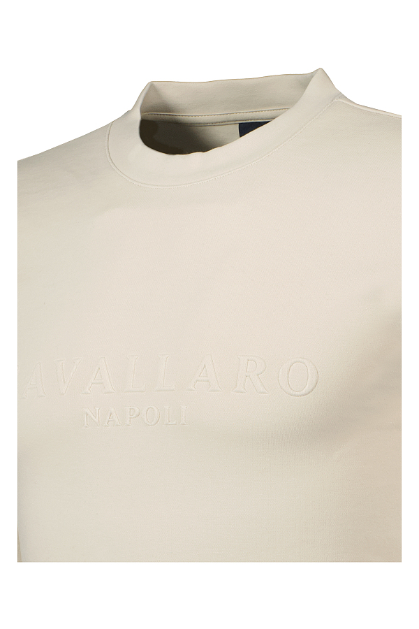 Lichtbeige sweater voor heren model Darigio Sweat van Cavallaro Napoli. De Darigio is gemaakt van een hoogwaardige katoenblend, heeft een ronde hals en heeft een ton-sur-ton 3D logo op de borst.