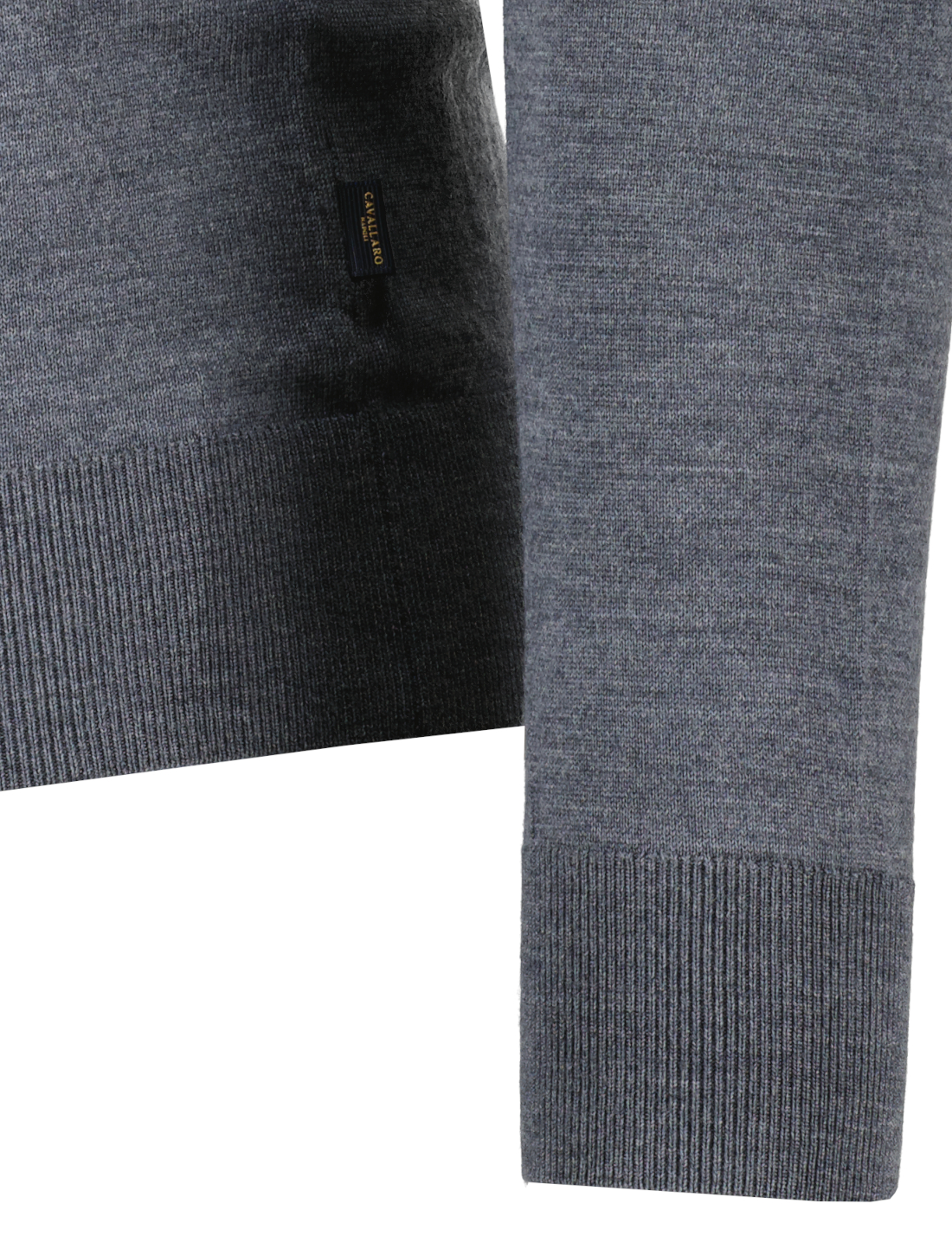 Antracietgrijze trui voor heren model Saronno Half Zip van Cavallaro Napoli. De Saronno is gemaakt van 100% Italiaanse merinowol, is voorzien van een blinde half zip sluiting, is afgewerkt met een subtiel logo badge op de mouw en heeft een regular fit.