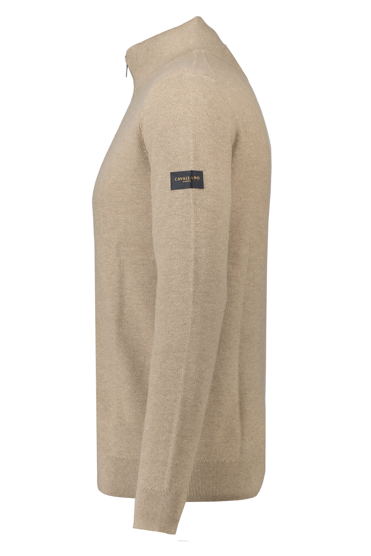 Taupe half-zip trui voor heren model Levanzio van Cavallaro Napoli. Deze trui is vervaardigd uit een katoen-kasjmierblend en uitgevoerd in een subtiel pique geweven stof. De stofblend zorgt voor een zachte feel en hoog draagcomfort. Heeft een regular fit, geribde hals, manchetten en onderband en heeft een logo op de linkermouw.
