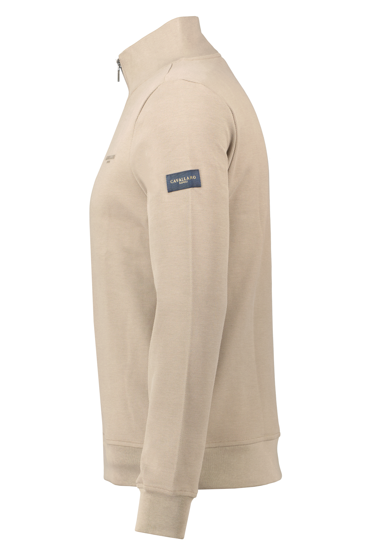 Taupe vest voor heren model Francio van Cavallaro Napoli. De Francio is gemaakt van een katoenblend en is uitgevoerd in een subtiel piqué geweven stof met stretch, heeft een ton-sur-ton logo op de borst, een logo-badge op de mouw een hoge kraag en komt in regular fit.