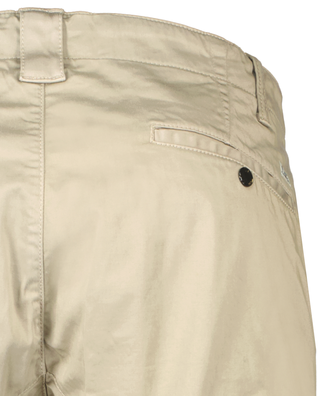 Beige cargobroek voor heren van C.P. Company. De broek heeft een ergonomische pasvorm, twee cargozakken en het CP Company Lens-detail. Verder is de broek voorzien van riemlussen, een ritssluiting en knoopsluiting. Vervaardigd van lichtgewicht stretchsatijn, een mat katoenen textiel met ingebouwde rekbaarheid, voor een flexibele en duurzame pasvorm, en de broek is geverfd voor een verhoogde chromatische diepte en intensiteit.