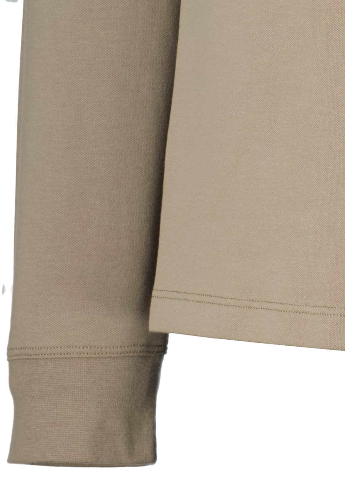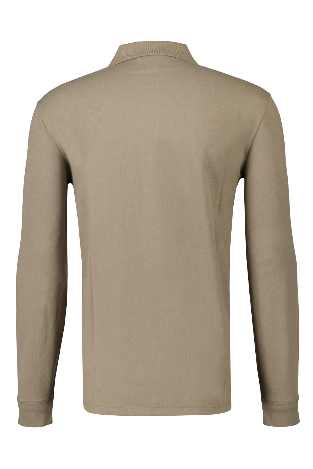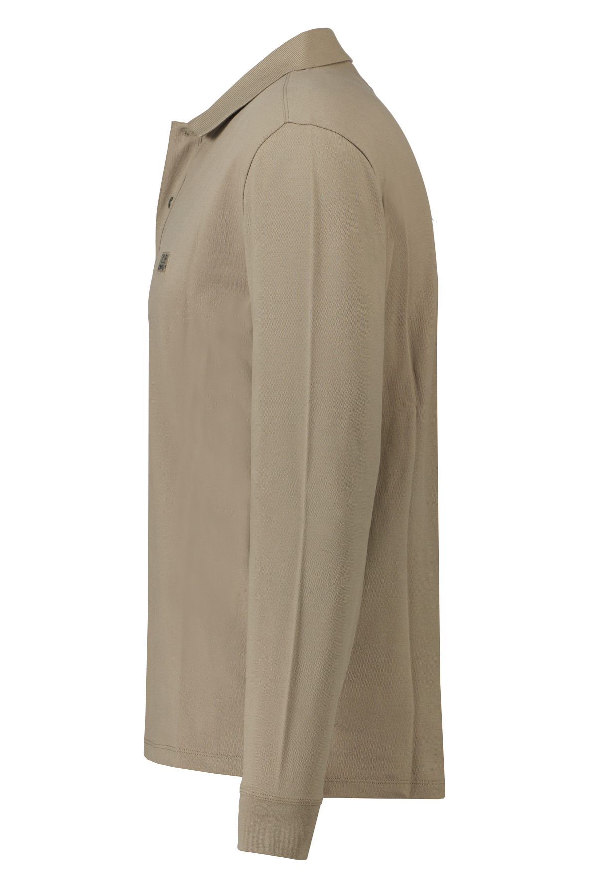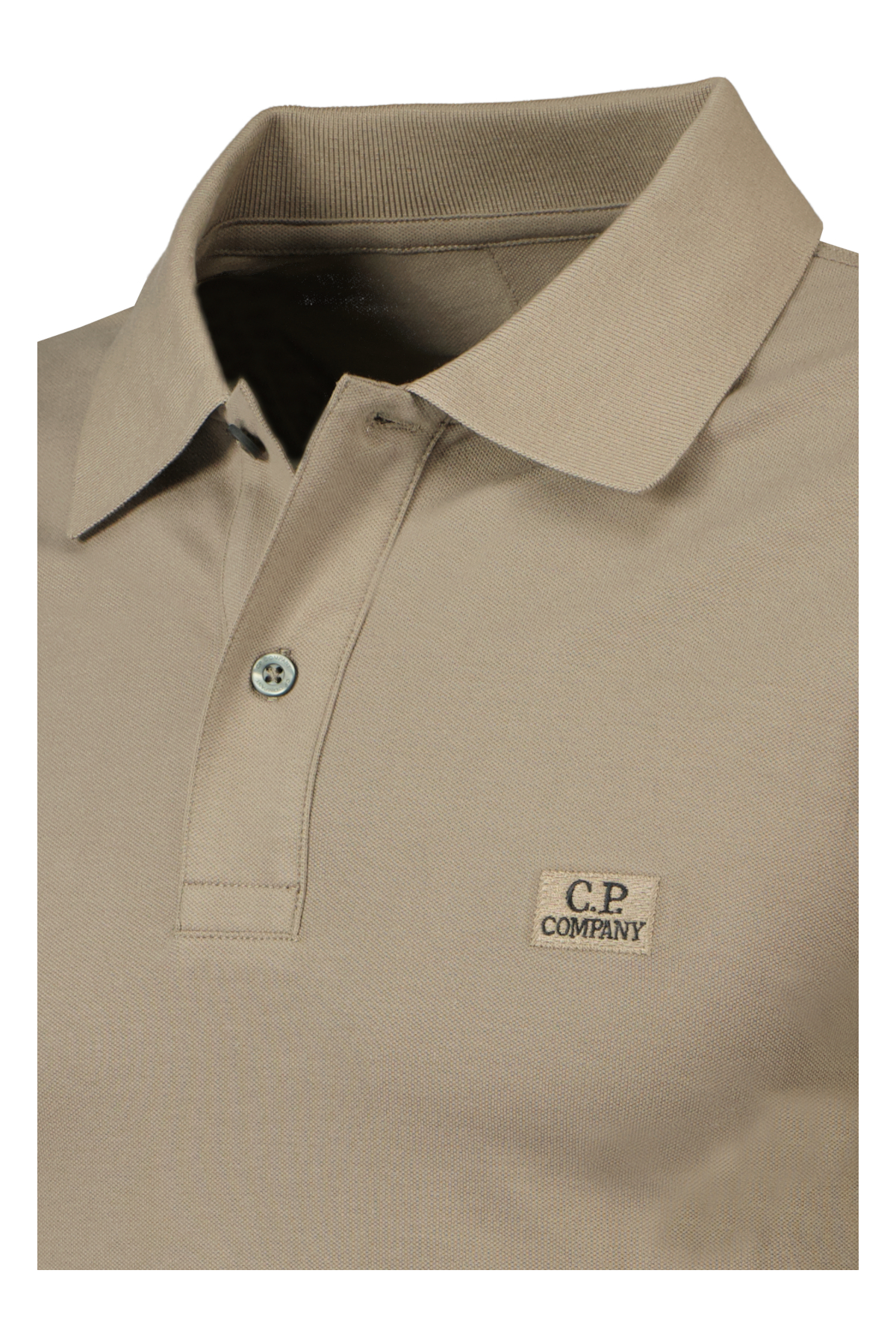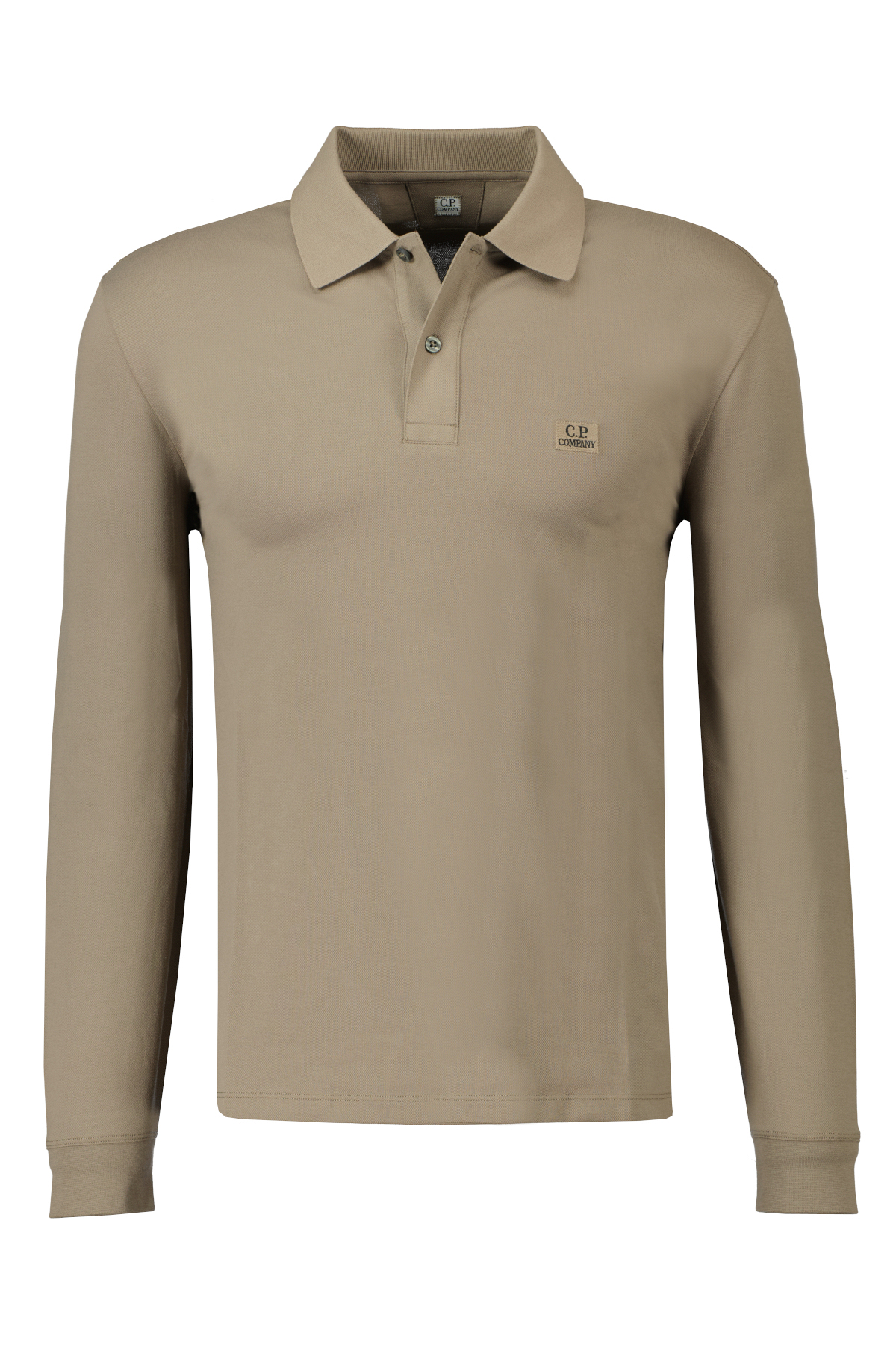 Taupe polo met lange mouwen voor heren van C.P. Company. Deze polo is gemaakt van piquékatoenstretch, heeft een geribbelde kraag met sluiting met twee knopen, een geborduurd logopatch op de borst, geribbelde manchetten en een normale pasvorm.