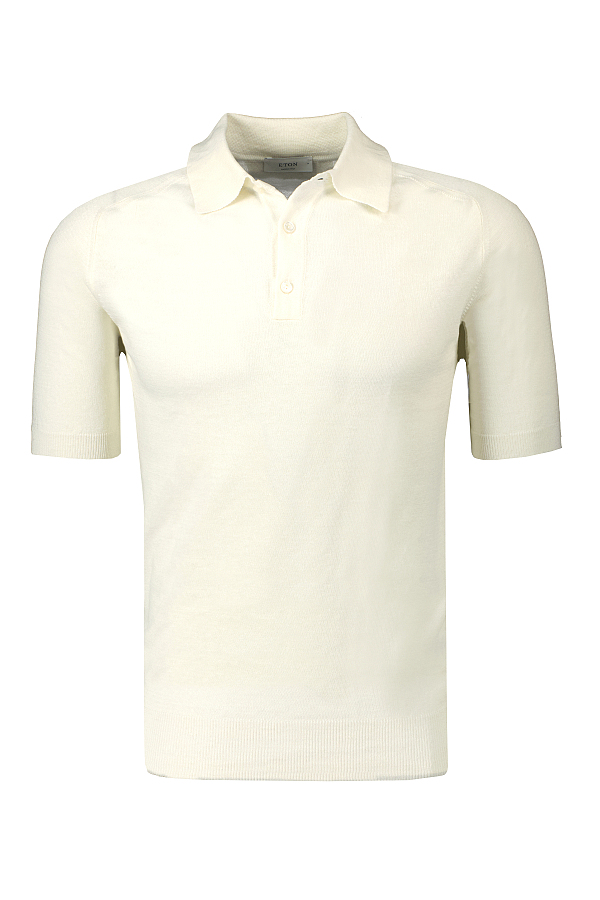 Lichtbeige polo voor heren van Eton. Gemaakt door deskundige breisters nabij Venetië, Italië, van de zachtste linnen- en katoengarens, heeft dit warme beige poloshirt een raglanmouw. De gebreide structuur en de lichtgewicht combinatie van linnen en katoen zorgen voor comfort en elegantie.