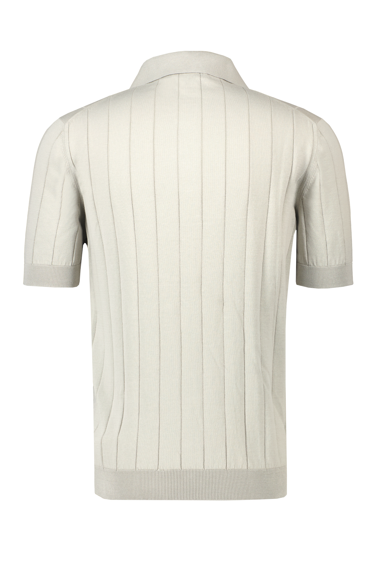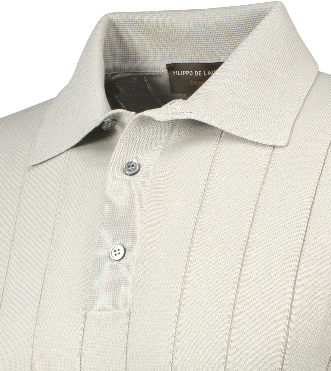 Beige grijze polo voor heren van Filippo de Laurentiis. De polo is gemaakt van lichtgewicht, elastisch Crêpe katoen dat droog aanvoelt, heeft een polokraag met drie parelmoer knoopjes, geribbelde manchetten en zoom, korte mouwen en is gemaakt in Italië.