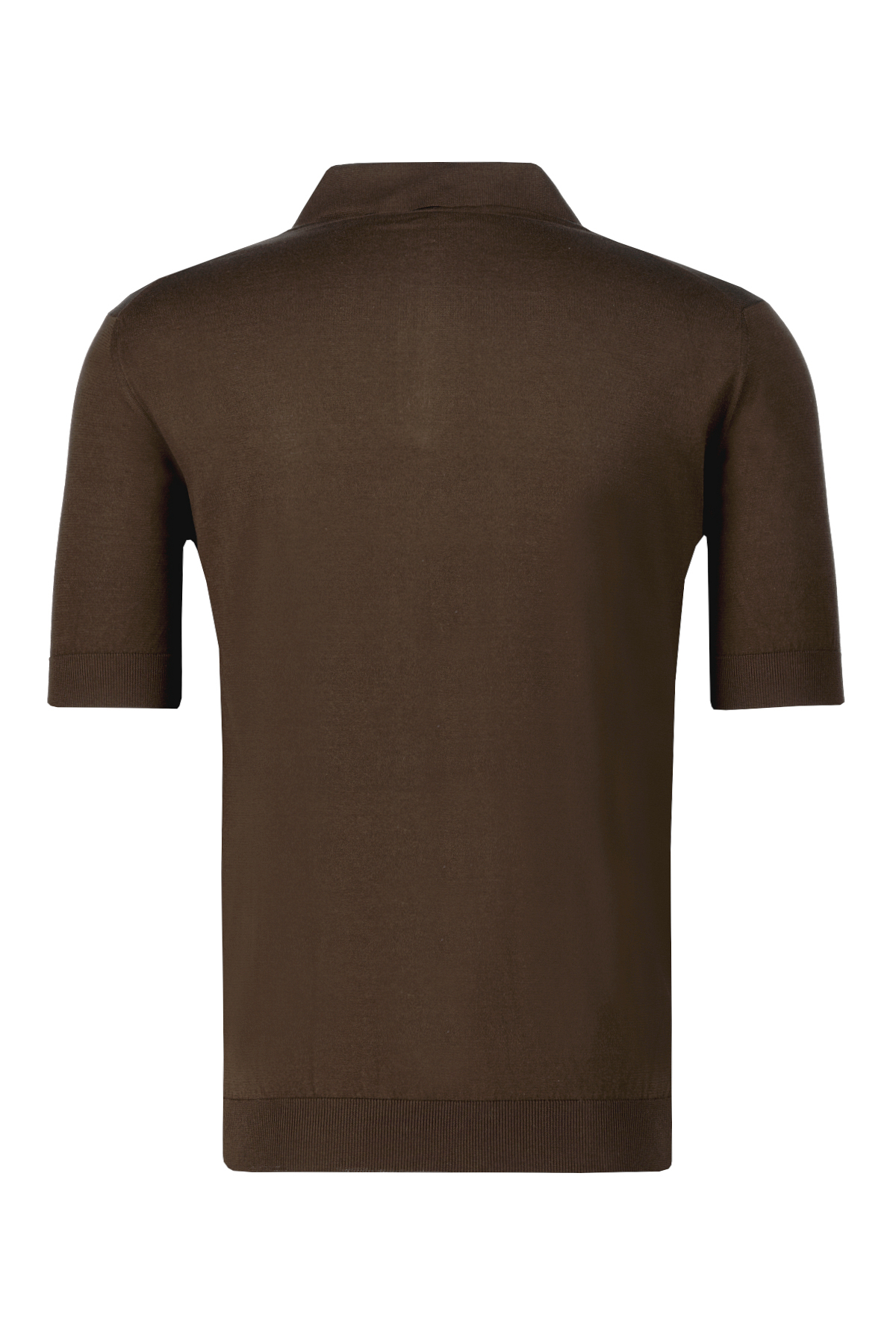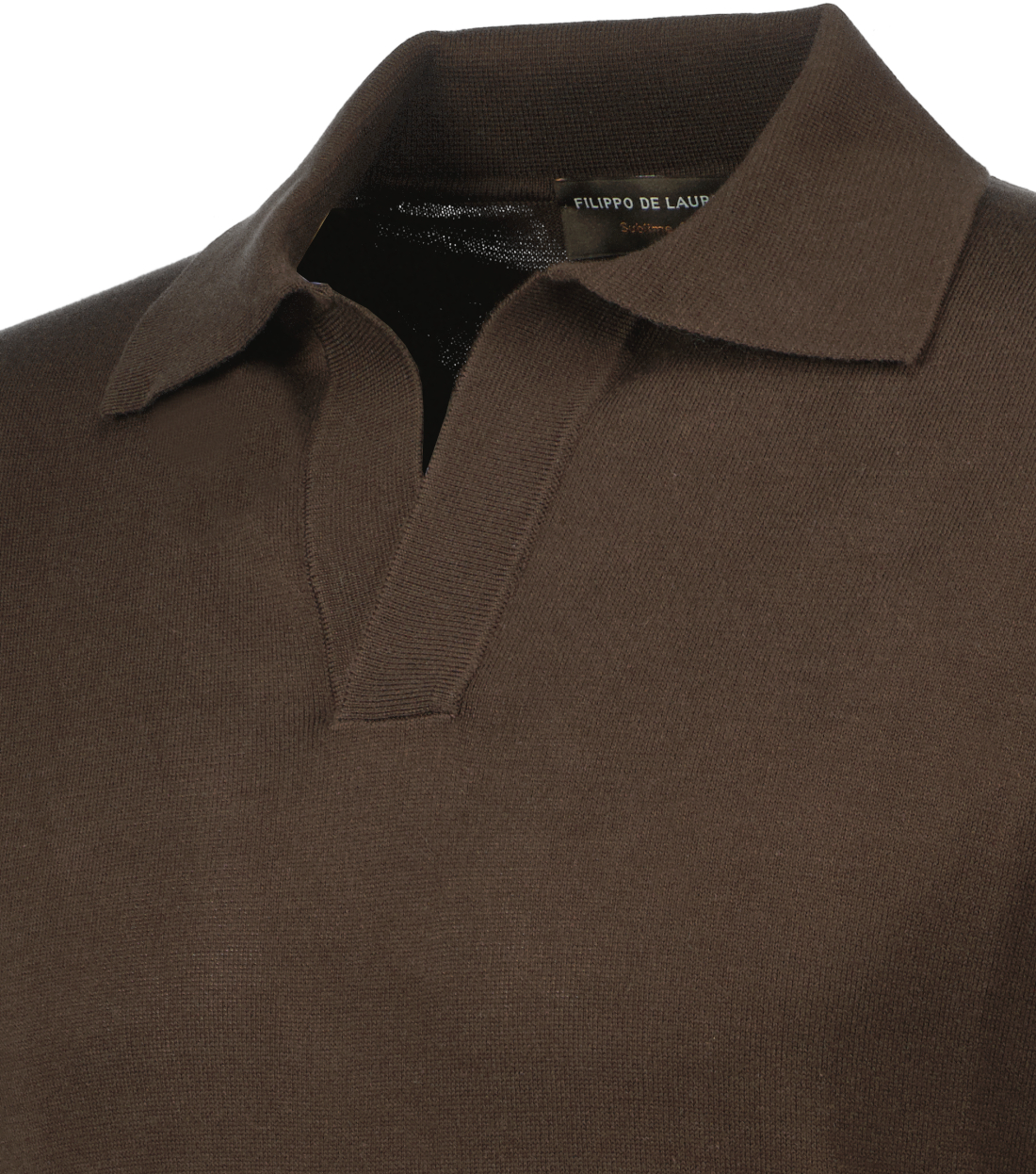 Donkerbruine polo voor heren van Filippo de Laurentiis. De polo is gemaakt van lichtgewicht, elastisch Sublime katoen dat droog aanvoelt, heeft een polokraag met V-hals, geribbelde manchetten en zoom, korte mouwen en is gemaakt in Italië.