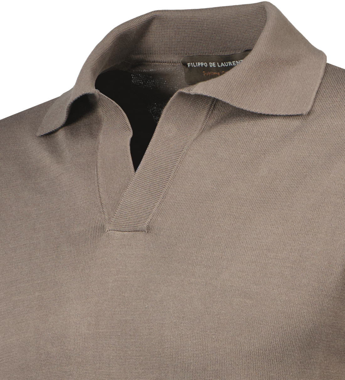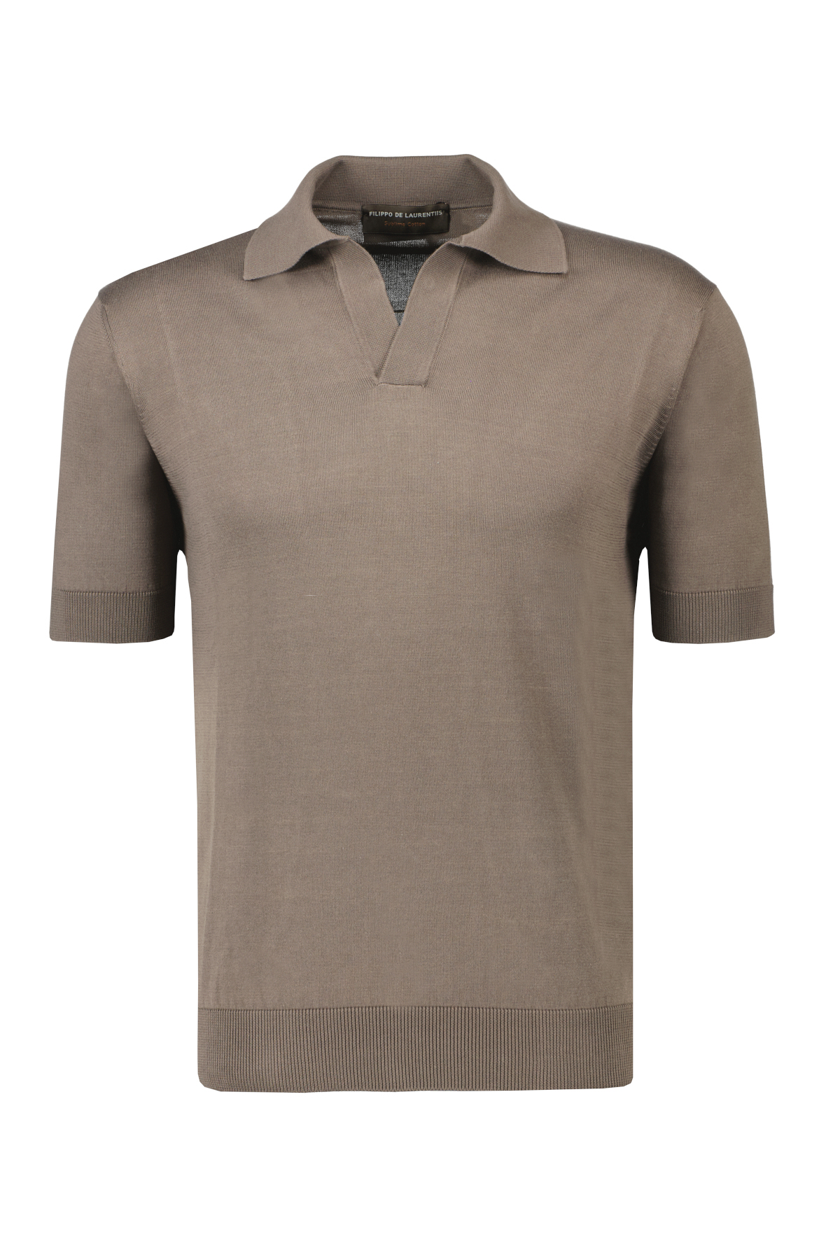 Donker taupe polo voor heren van Filippo de Laurentiis. De polo is gemaakt van lichtgewicht, elastisch Sublime katoen dat droog aanvoelt, heeft een polokraag met V-hals, geribbelde manchetten en zoom, korte mouwen en is gemaakt in Italië.