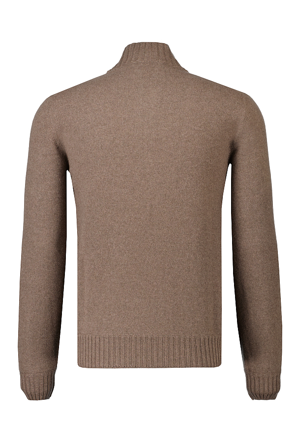 Lichtbruine half-zip trui met hoge kraag voor heren van Gran Sasso. Deze trui heeft een geribbelde hals, onderband en manchetten, heeft een regular fit pasvorm en is gemaakt van 100% kasjmier.