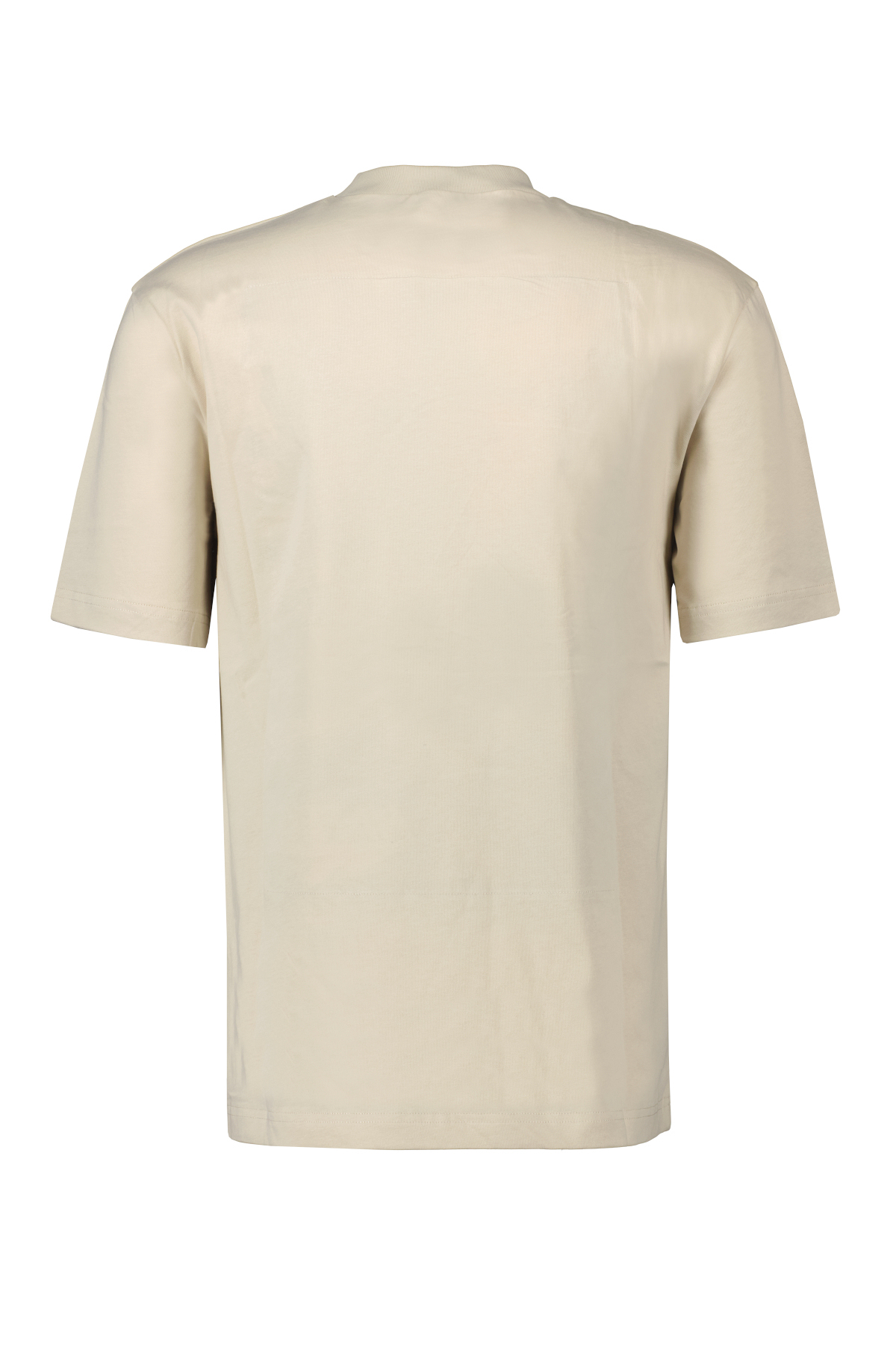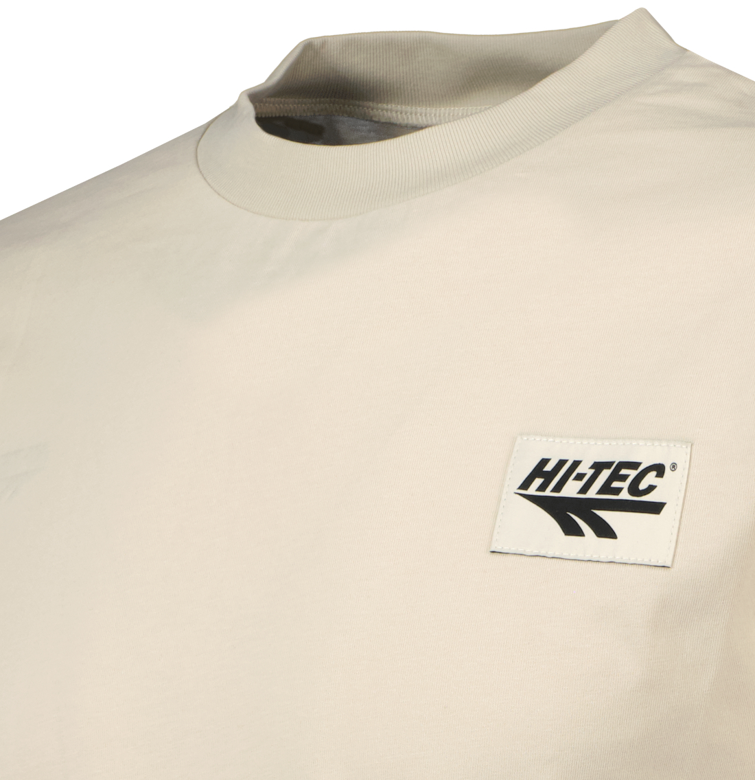 Beige T-shirt voor heren van Hi-Tec. Dit T-shirt met korte mouwen en ronde hals is gemaakt van zacht 100% katoen, heeft een klassieke, relaxte pasvorm. en een gewoven HI-TEC logopatch op de borst. Het shirt is volledig omkeerbaar. Draag het aan de strakke kant voor een minimalistische look, of keer het binnenstebuiten voor een opvallend, gepersonaliseerd artwork.