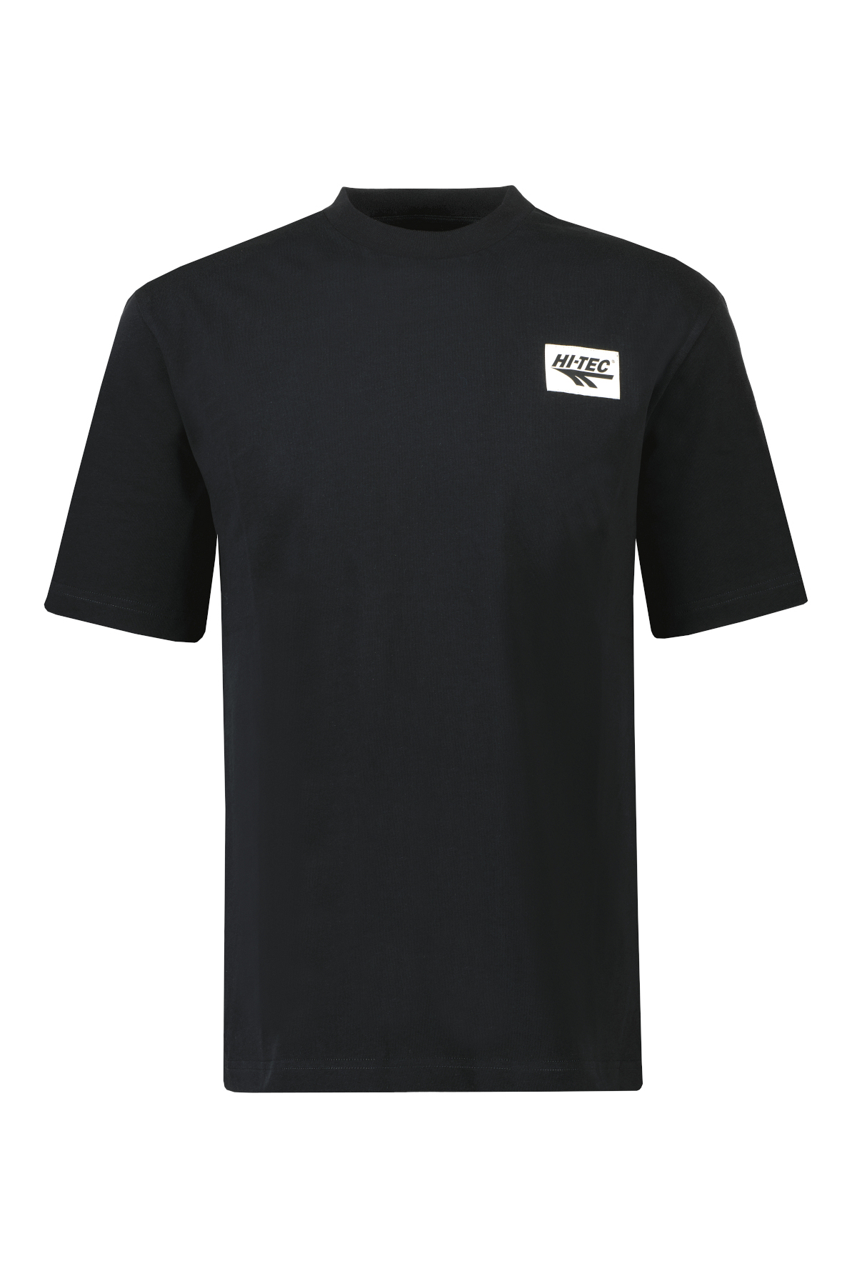 Zwart T-shirt voor heren van Hi-Tec. Dit T-shirt met korte mouwen en ronde hals is gemaakt van zacht 100% katoen, heeft een klassieke, relaxte pasvorm. en een gewoven HI-TEC logopatch op de borst. Het shirt is volledig omkeerbaar. Draag het aan de strakke kant voor een minimalistische look, of keer het binnenstebuiten voor een opvallend, gepersonaliseerd artwork.