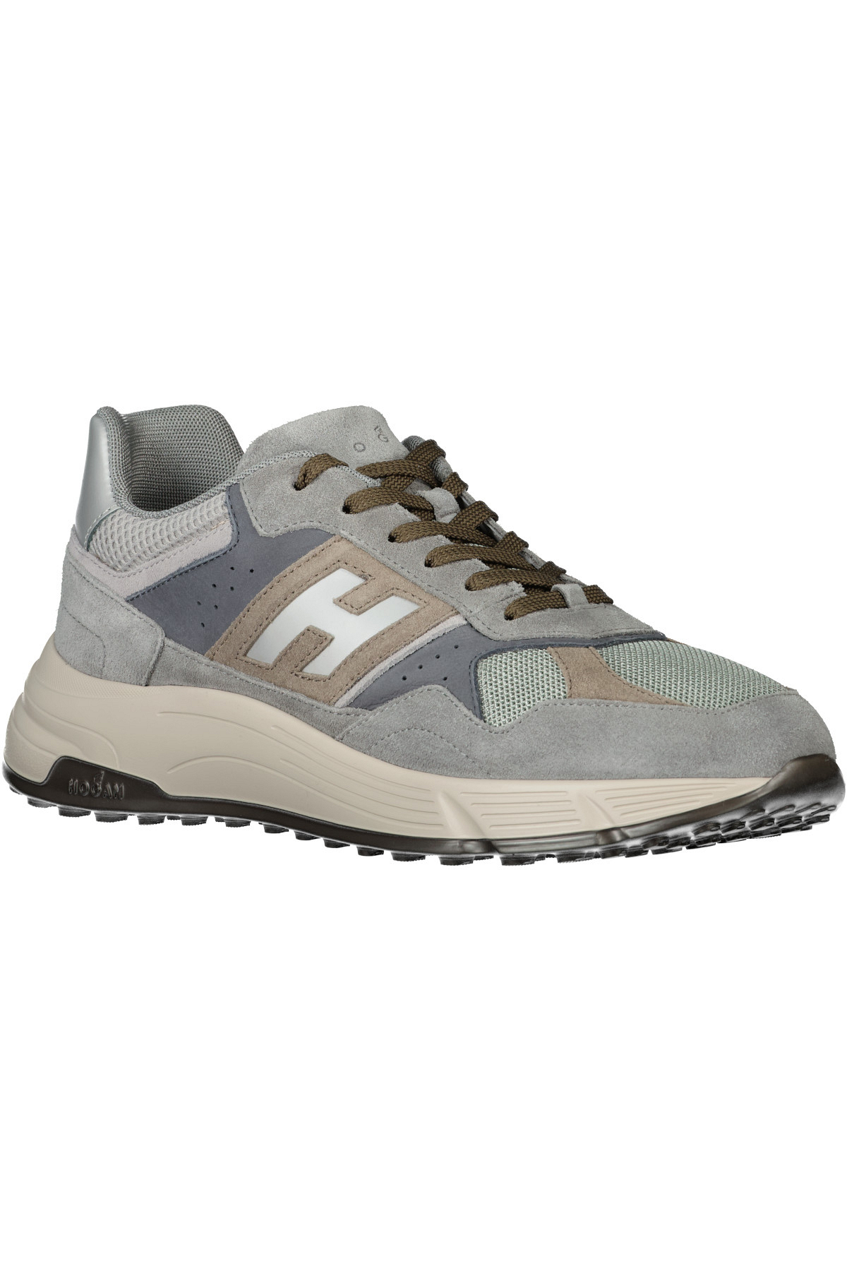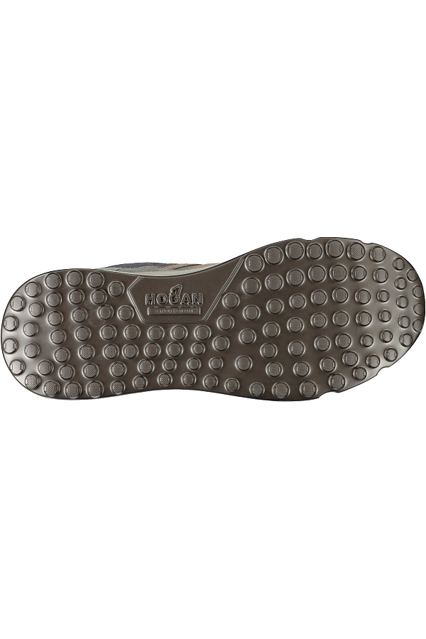 Grijs met beige en bruine schoenen voor heren model Hyperlight van het merk Hogan. Gekenmerkt door soepele en dynamische vormen, combineren de Hogan Hyperlight sneakers de joggingschoenlijnen en stedelijke kenmerken. Het suède bovenwerk en de inzetstukken van technische stof doen denken aan iconische details van het merk, en worden versterkt door de H aan de zijkant. Een dynamische stijl, met een binnenzool van traagschuim en een lichtgewicht buitenzool met spikes. Onderhouds- en verzorgingskaarten inbegrepen, inclusief stoffen stofzak en extra veters.