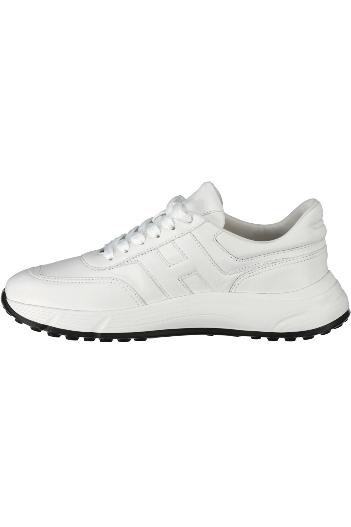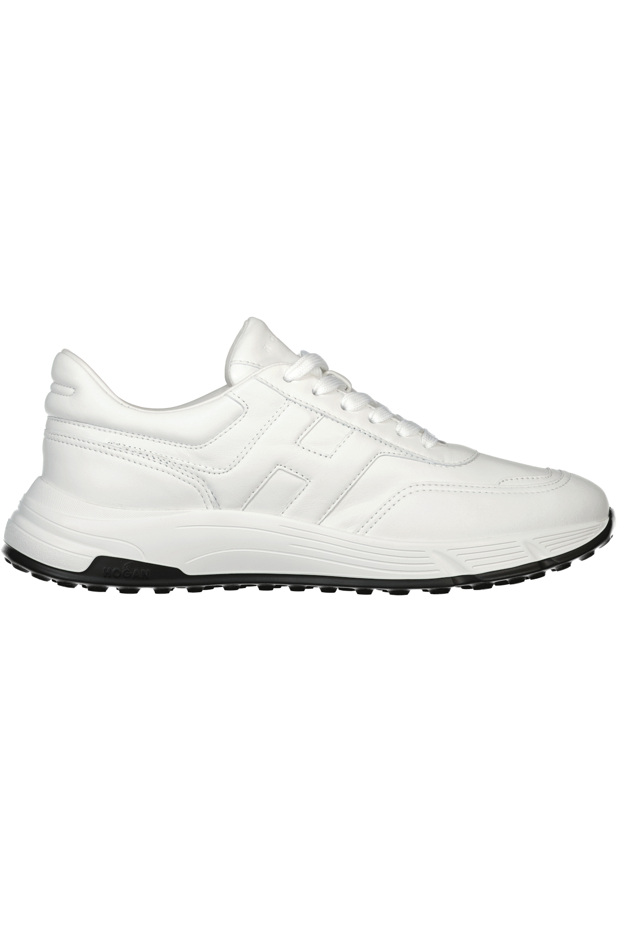 Wit op witte schoenen voor heren model Hyperlight van Hogan. Gekenmerkt door soepele en dynamische vormen, combineren de Hogan Hyperlight sneakers de joggingschoenlijnen en stedelijke kenmerken. Het suède bovenwerk en de inzetstukken van technische stof doen denken aan iconische details van het merk, en worden versterkt door de H aan de zijkant. Een dynamische stijl, met een binnenzool van traagschuim en een lichtgewicht buitenzool met spikes.