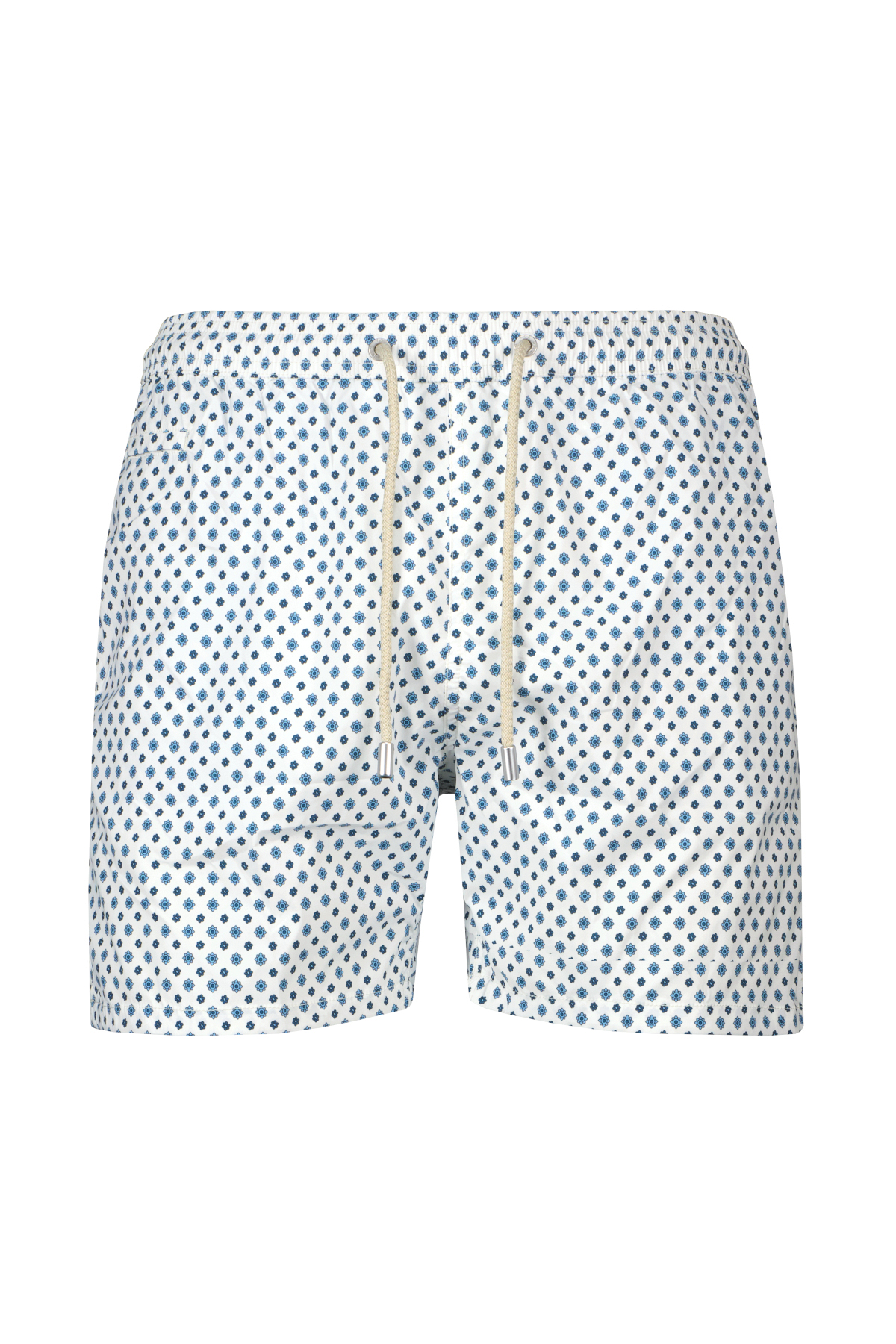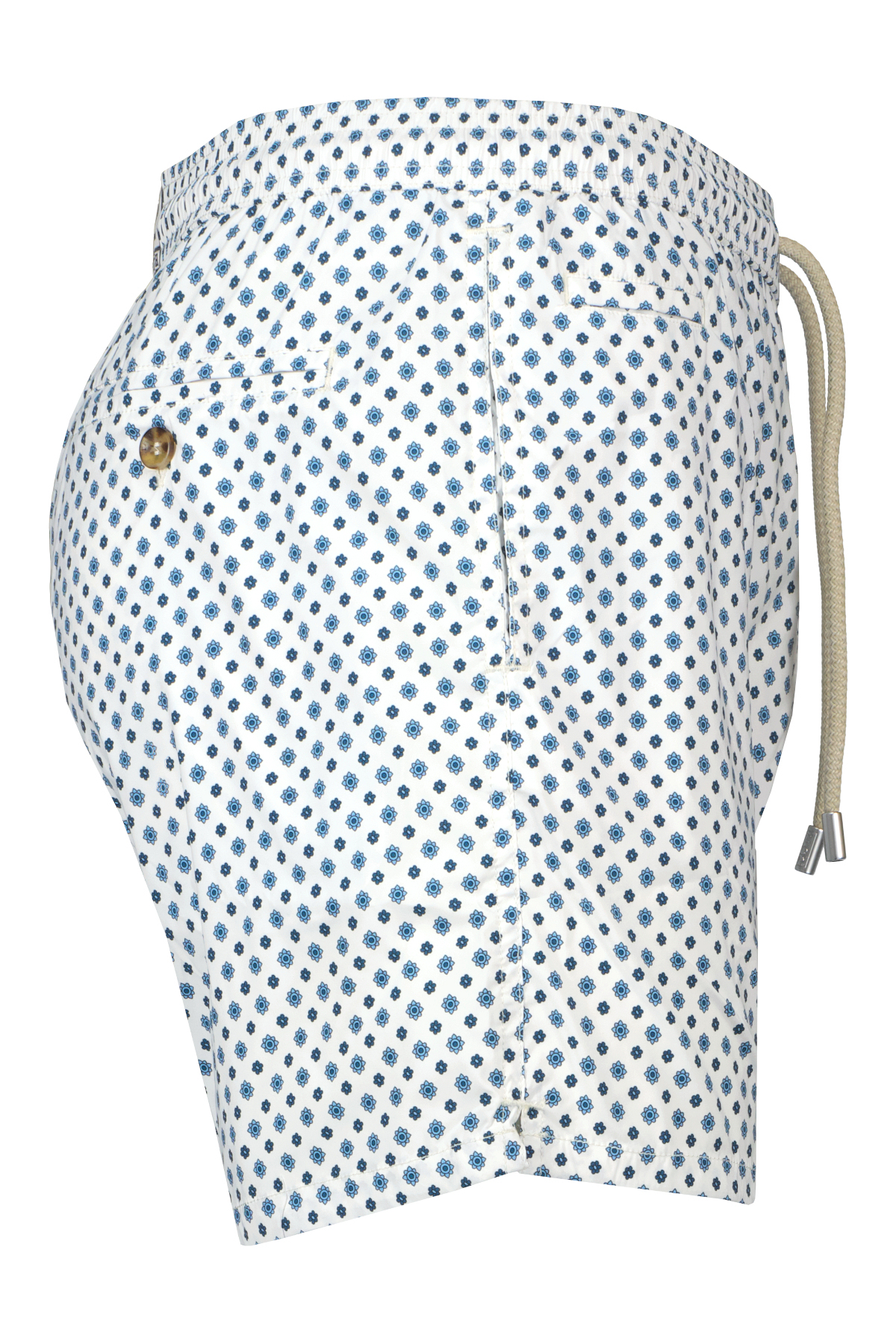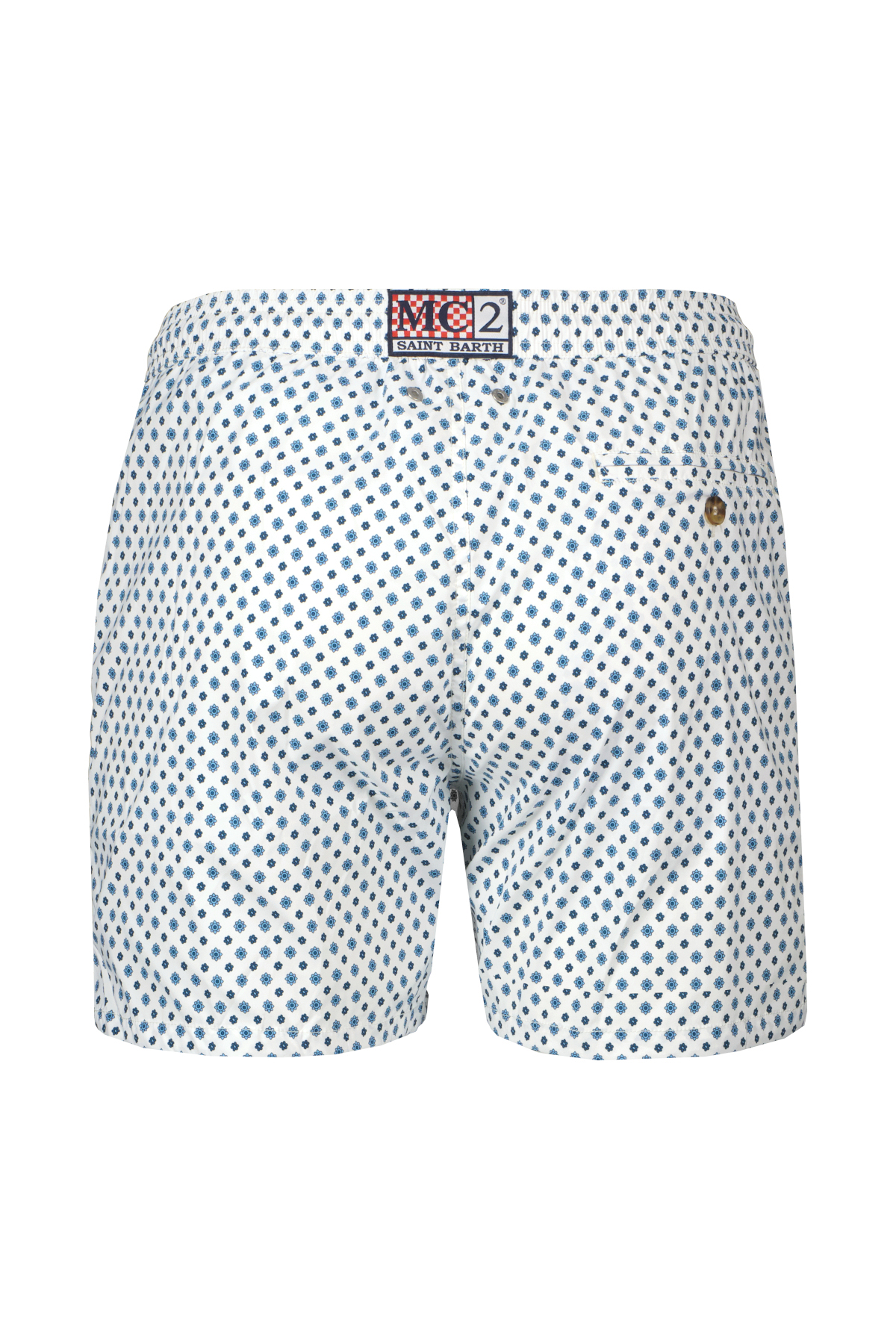 Witte zwemshorts met all-over print model Lighting van MC2 Saint Barth. De Lighting is gemaakt van 100% gerecycled polyester, heeft twee streekzakken en een achterzak die te sluiten is met klittenband.