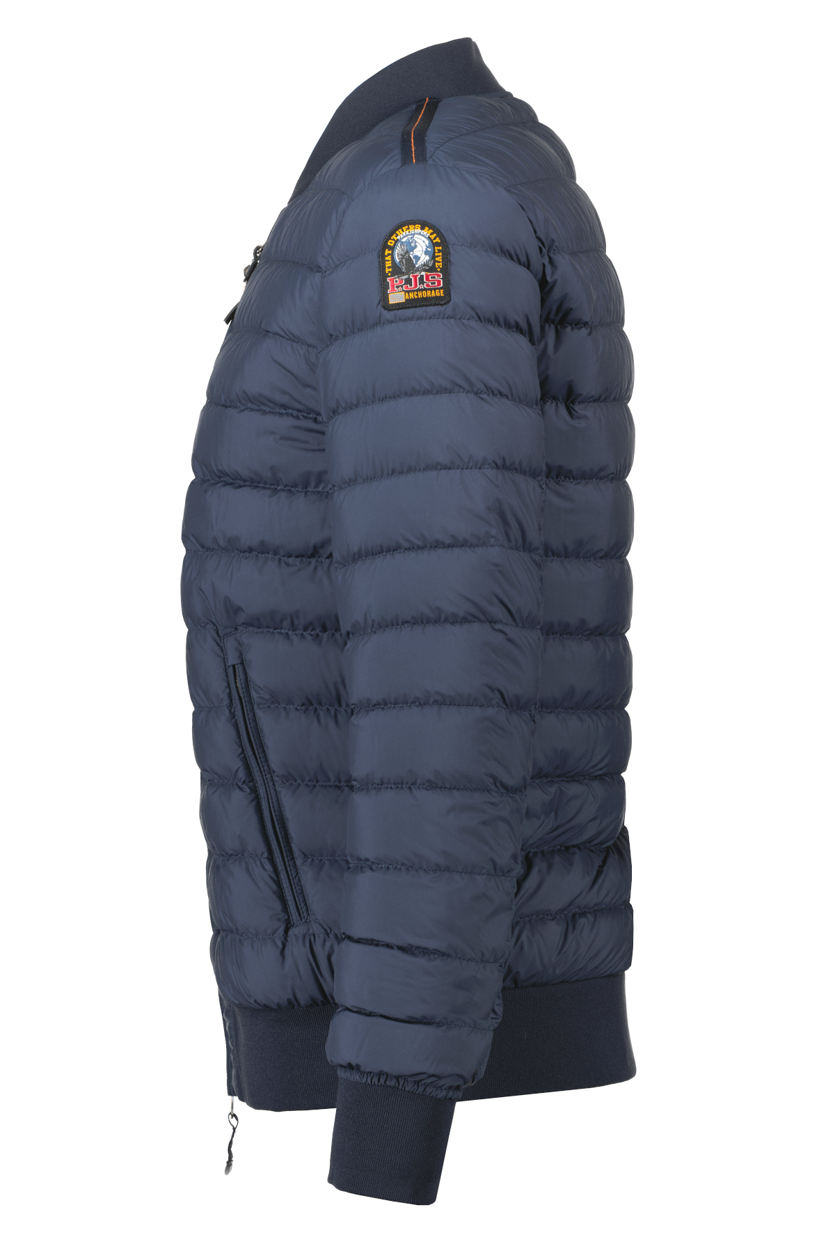 Donkerblauwe jas voor heren model Breving van Parajumpers. De Breving is een doorgestikte donsgevulde bomberjack, afkomstig uit de Super Lightweight-serie, gemaakt van polyester taffeta met een matte afwerking. Heeft een sluiting aan de voorkant met tweewegrits, drie zakken met rits en één binnenzak met klittenband, ventilatie onder de armen, een geribde kraag, manchetten en onderkant en het Parajumpers patchlogo op de mouw.