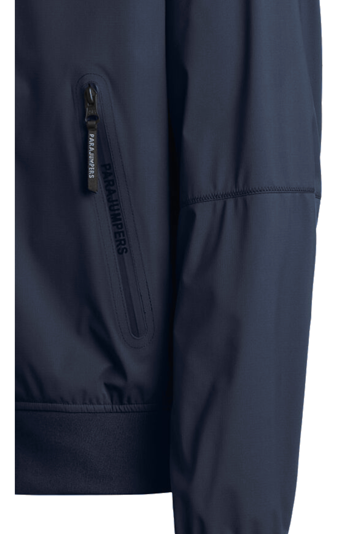 Blauwe Miles jas van Parajumpers. De Miles Bomber is gemakkelijk te dragen en heeft een minimalistische stijl en is gemaakt van een waterdichte 3-laagse softshell, perfect voor alle weersomstandigheden. De pasvorm van dit model is normaal. Een licht bomberjack. Verborgen capuchon met trekkoord. De stof is een 3-laags softshell, met een matte finish ripstof.