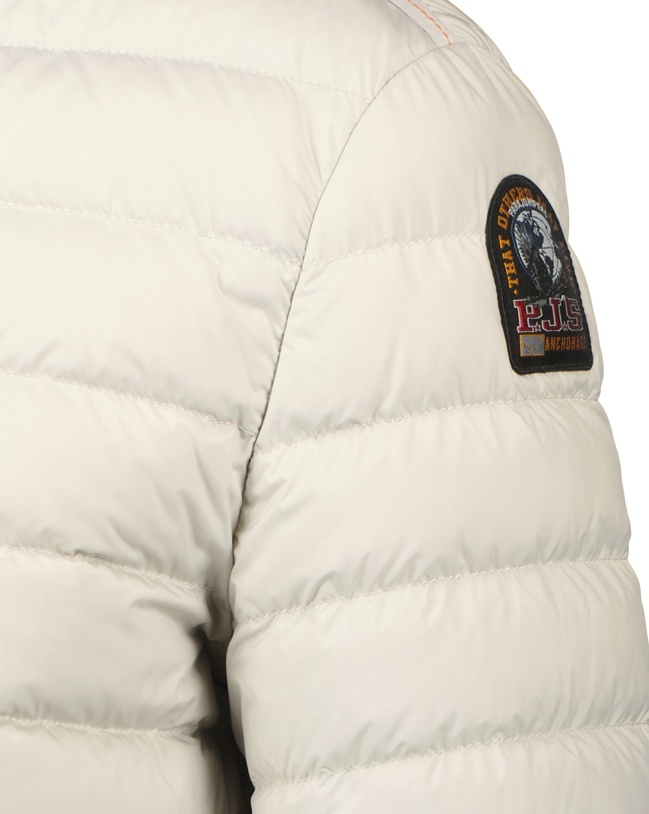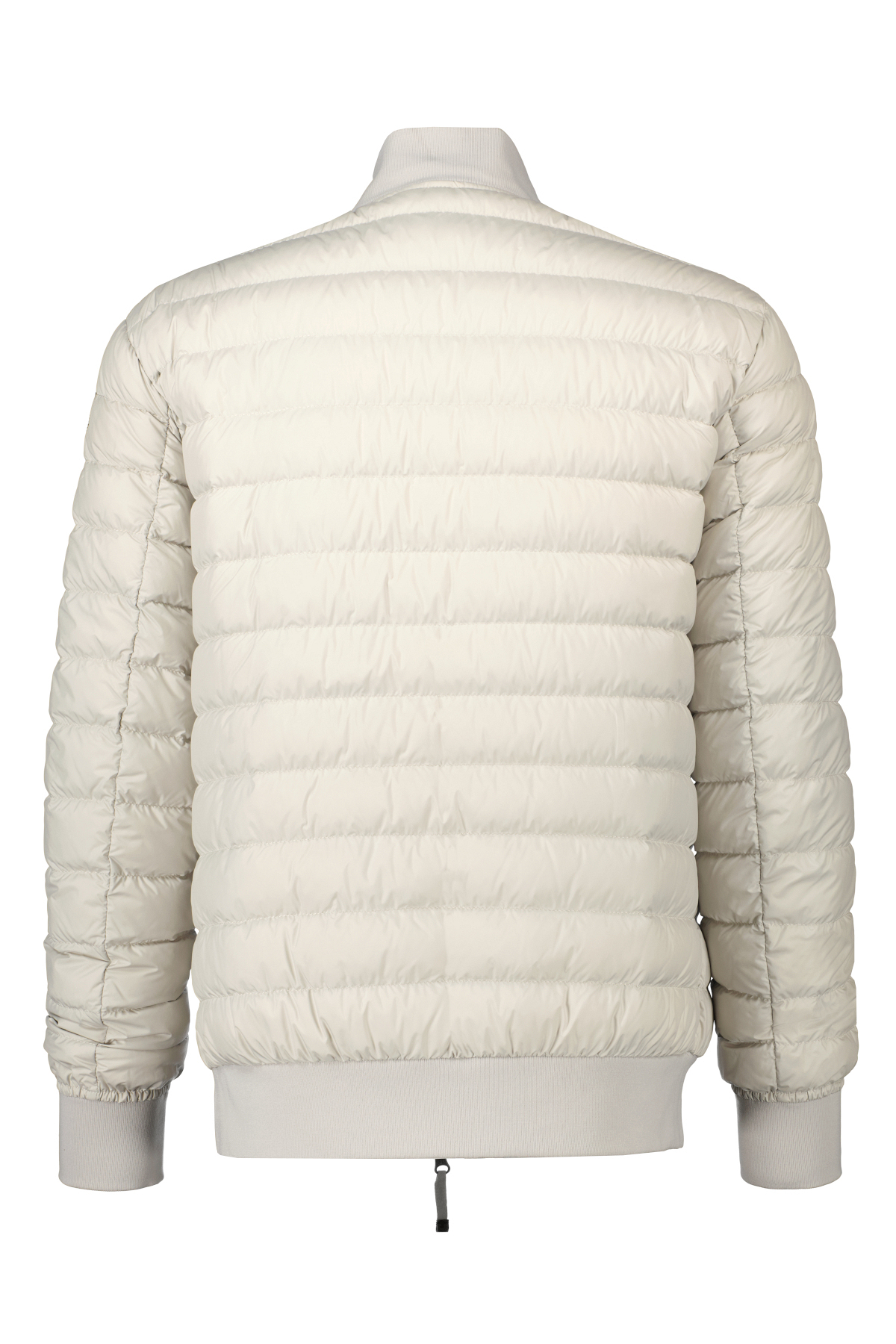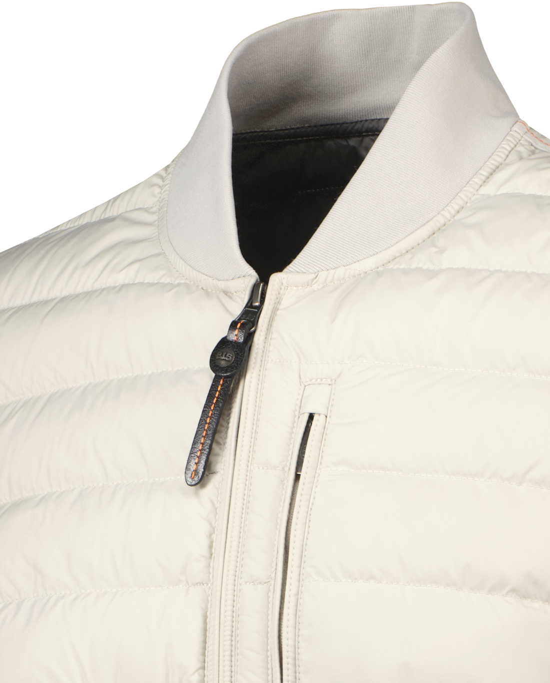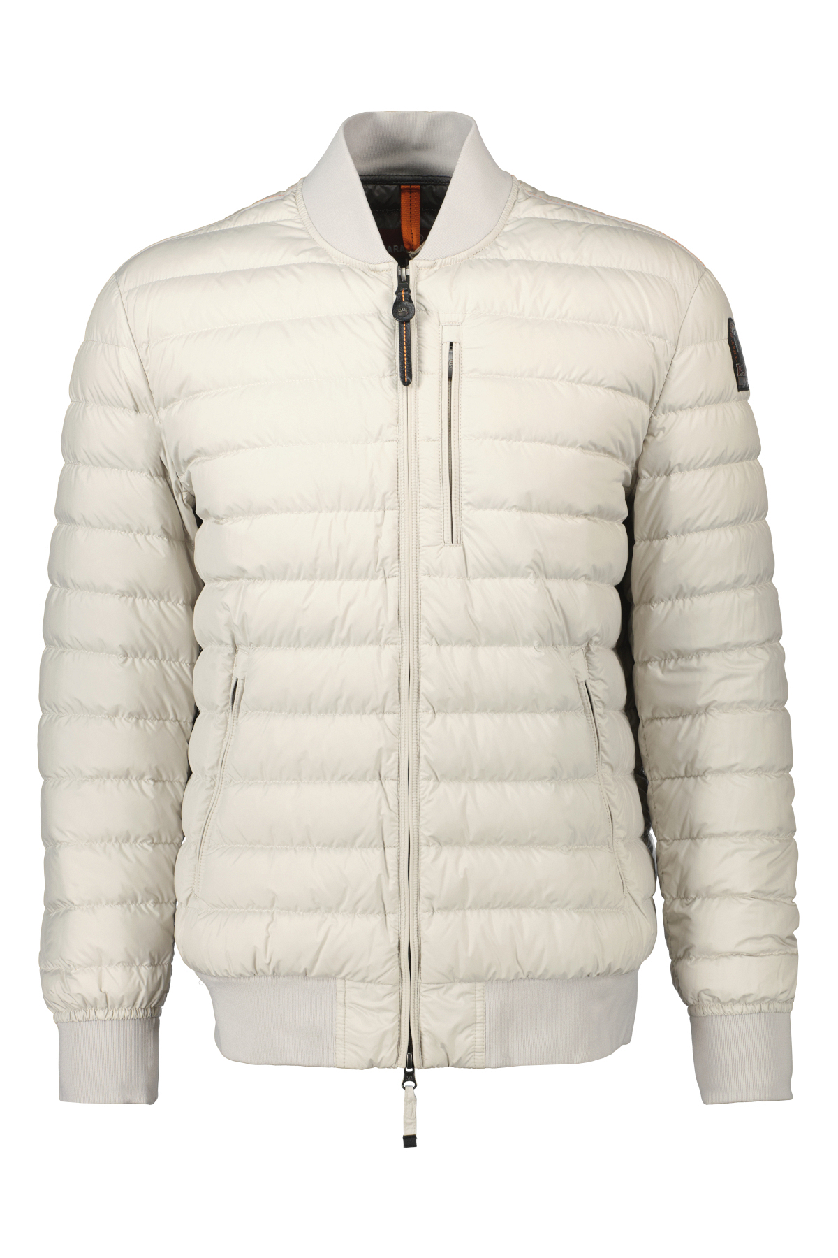 Lichtgrijze jas voor heren model Breving van Parajumpers. De Breving is een doorgestikte donsgevulde bomberjack, afkomstig uit de Super Lightweight-serie, gemaakt van polyester taffeta met een matte afwerking. Heeft een sluiting aan de voorkant met tweewegrits, drie zakken met rits en één binnenzak met klittenband, ventilatie onder de armen, een geribde kraag, manchetten en onderkant en het Parajumpers patchlogo op de mouw.