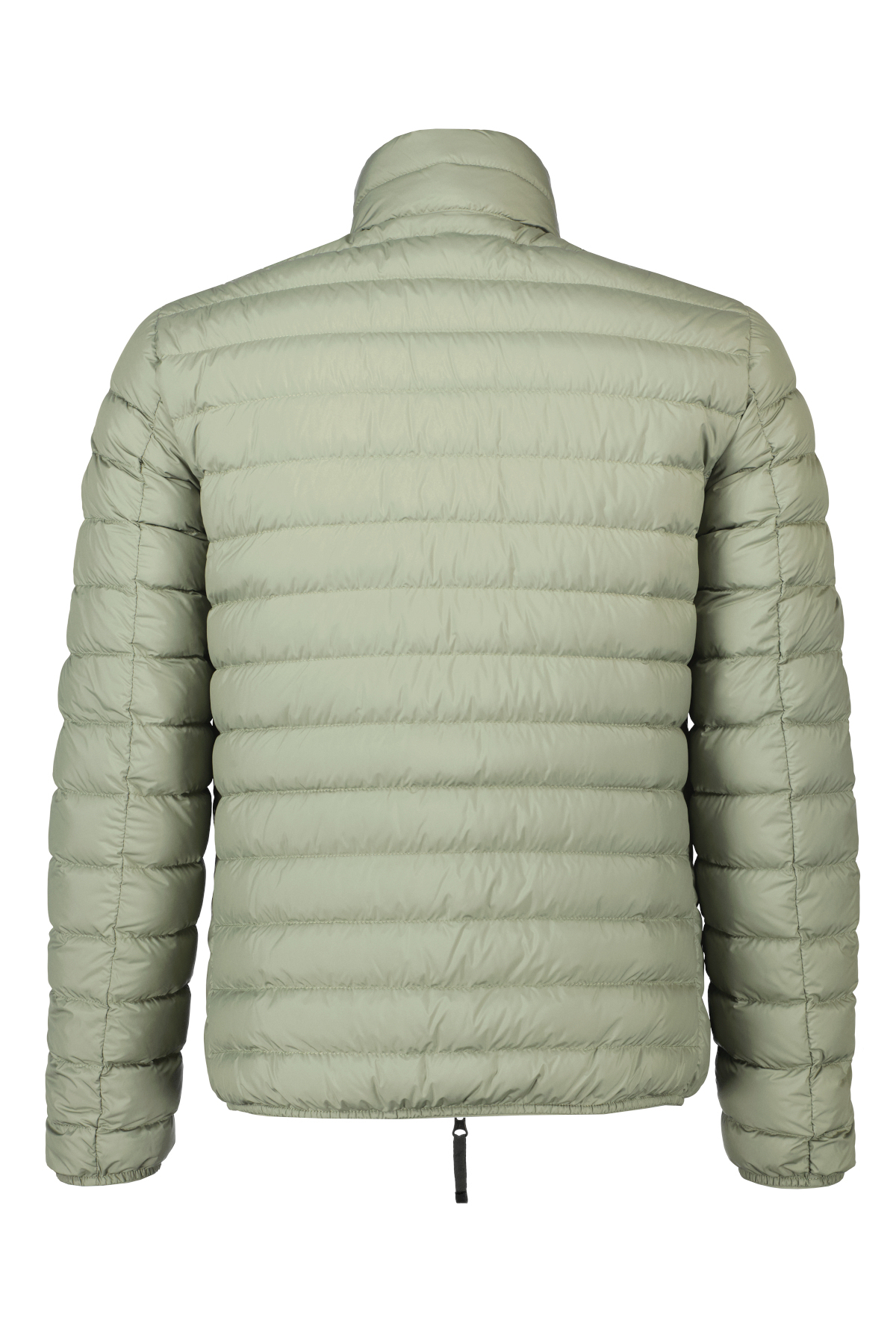 Groengrijze jas voor heren model Ugo van Parajumpers voorzien van een dubbele ritssluiting. Op de voorzijde van de jas zitten twee rechte zakken met blinde ritssluiting en een borstzak met ritssluiting op linkerborst. De linkerarm is voorzien van batch met logo PJS. In de kraag zit een ton-sur-ton elastische band en is de kraag tevens voorzien van de welbekende gele sluiting met drukknoop van Parajumpers. De onderkant en beide mouwen van de jas zijn mooi afgewerkt met een elastische band en onderarm ventilatie. De jas is gevoerd met 90% dons en 10% veren en heeft een waterafstotende behandeling ondergaan.