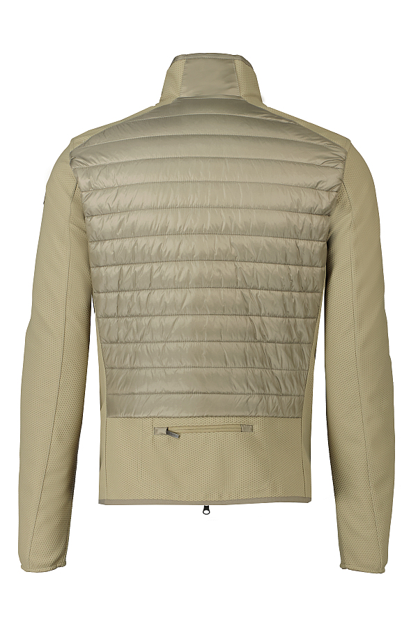 Beige jas voor heren model Jayden van Parajumpers voorzien met een enkele ritssluiting. Op de voorzijde van de jas zitten twee rechte zakken met blinde ritssluiting en een borstzak met ritssluiting op linkerborst. De linkerarm is voorzien van batch met het logo PJS. De armen zijn van een andere kwaliteit stof. De onderkant en beide manchetten zijn afgewerkt met een elastische ribband. De jas is gevoerd met 90% ganzendons en 10% veren.