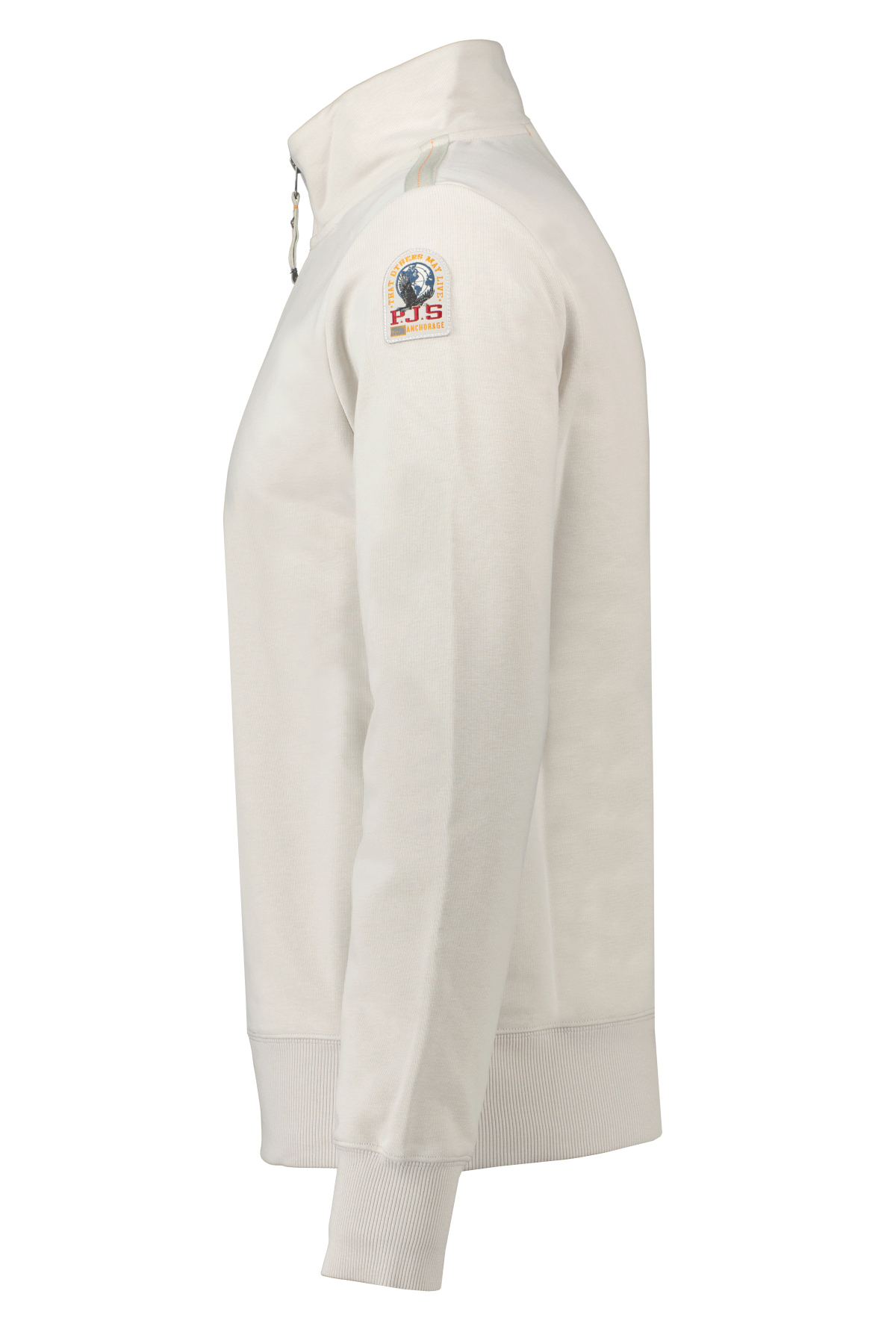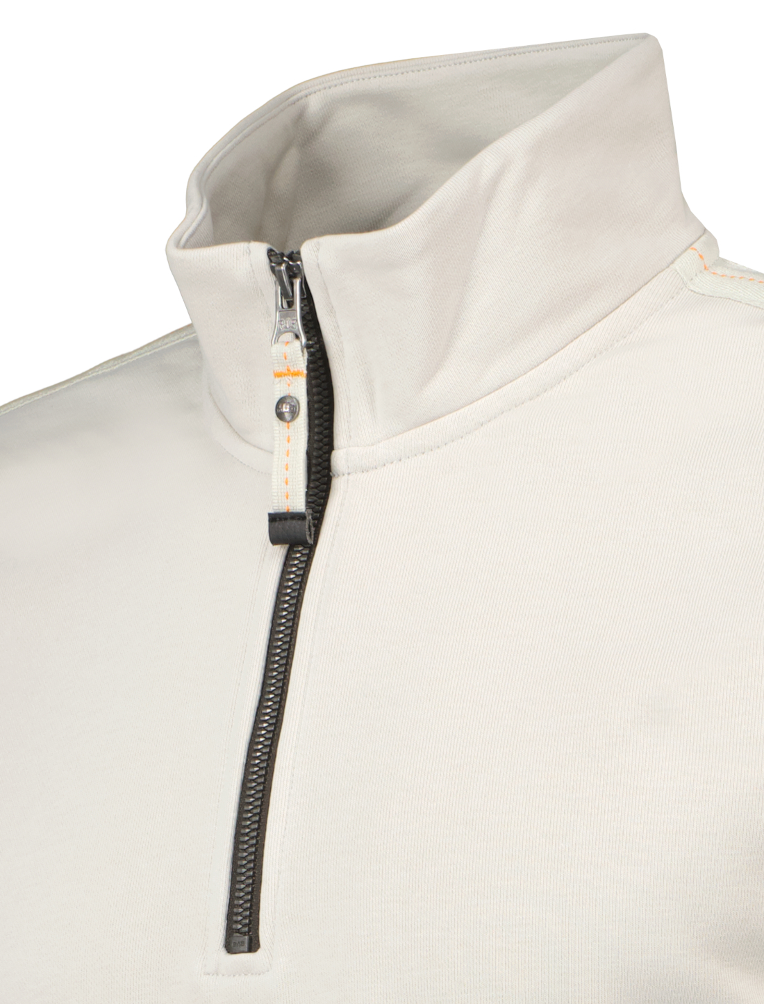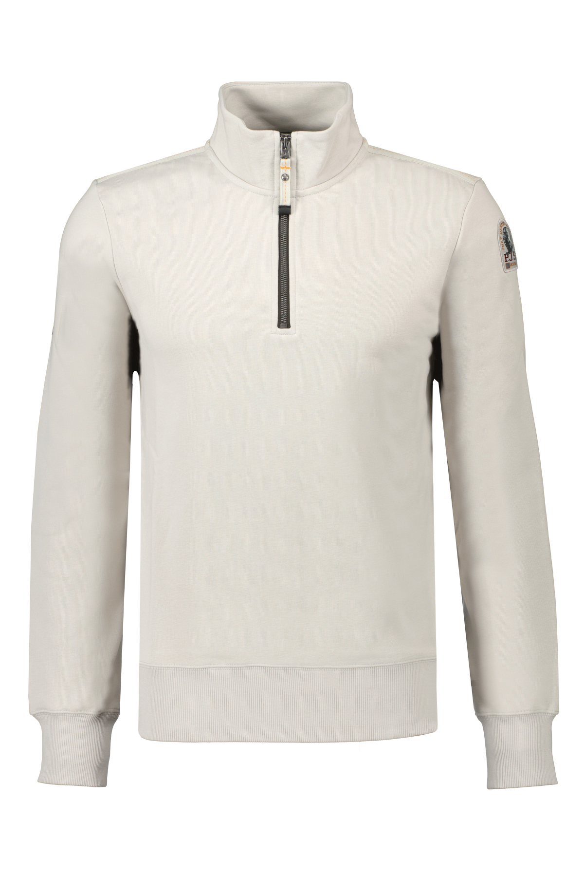 Lichtgrijze half-zip sweater voor heren model Broad Peak van Parajumpers. De Broad Peak is gemaakt van een katoen en polyester fleecestof met diagonale structuur op de achterkant, heeft een mezza rit, een elastische geribbelde onderkant en manchetten en heeft het Parajumpers-logopatch op de mouw.