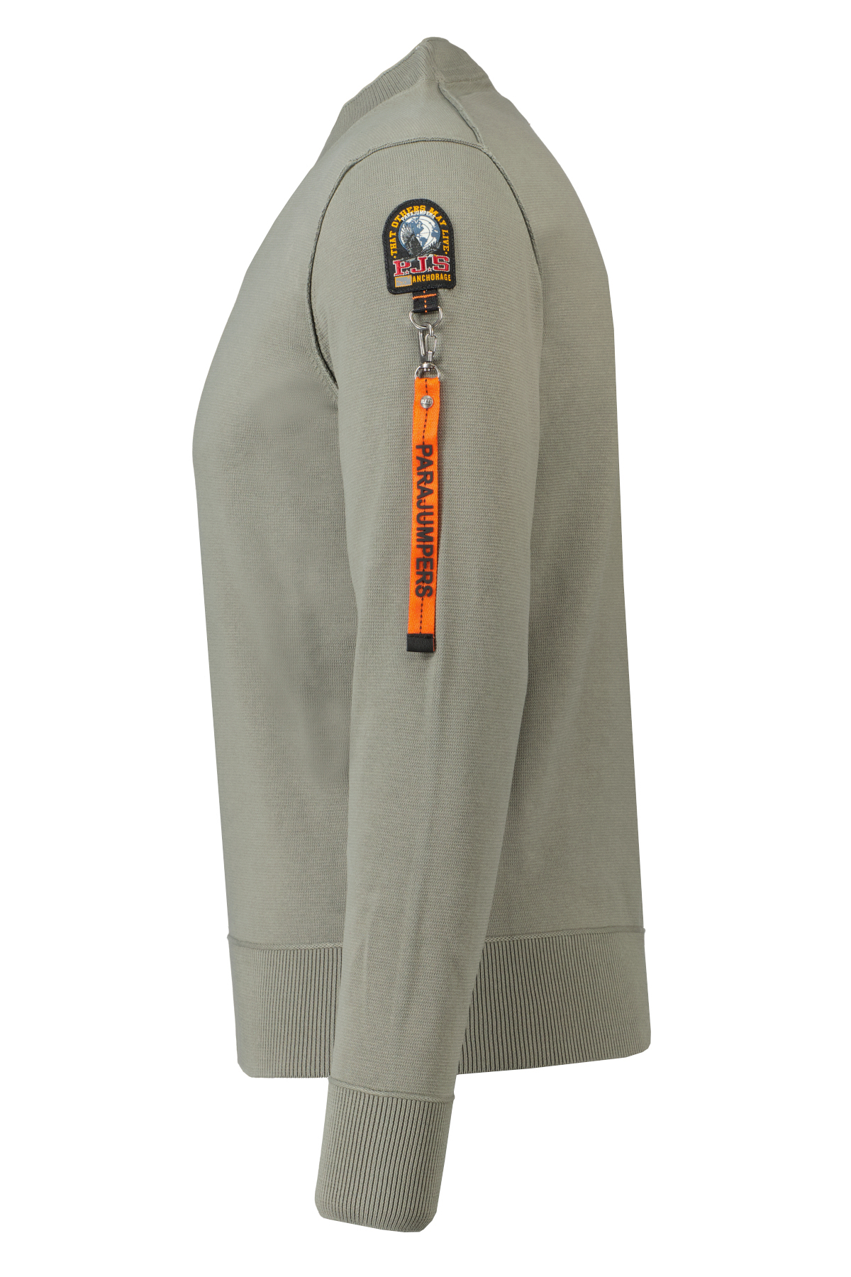 Zachtgroene sweater model Braw van Parajumpers. Deze sweater heeft een geribbelde crewneck, is gemaakt van een katoen en bamboe mix en heeft een Parajumpers logo op de linkerarm.