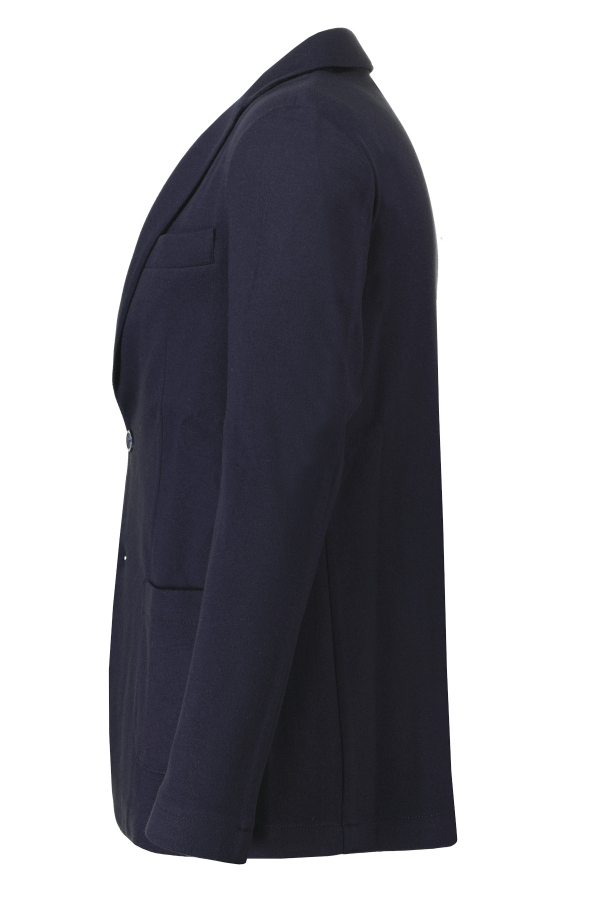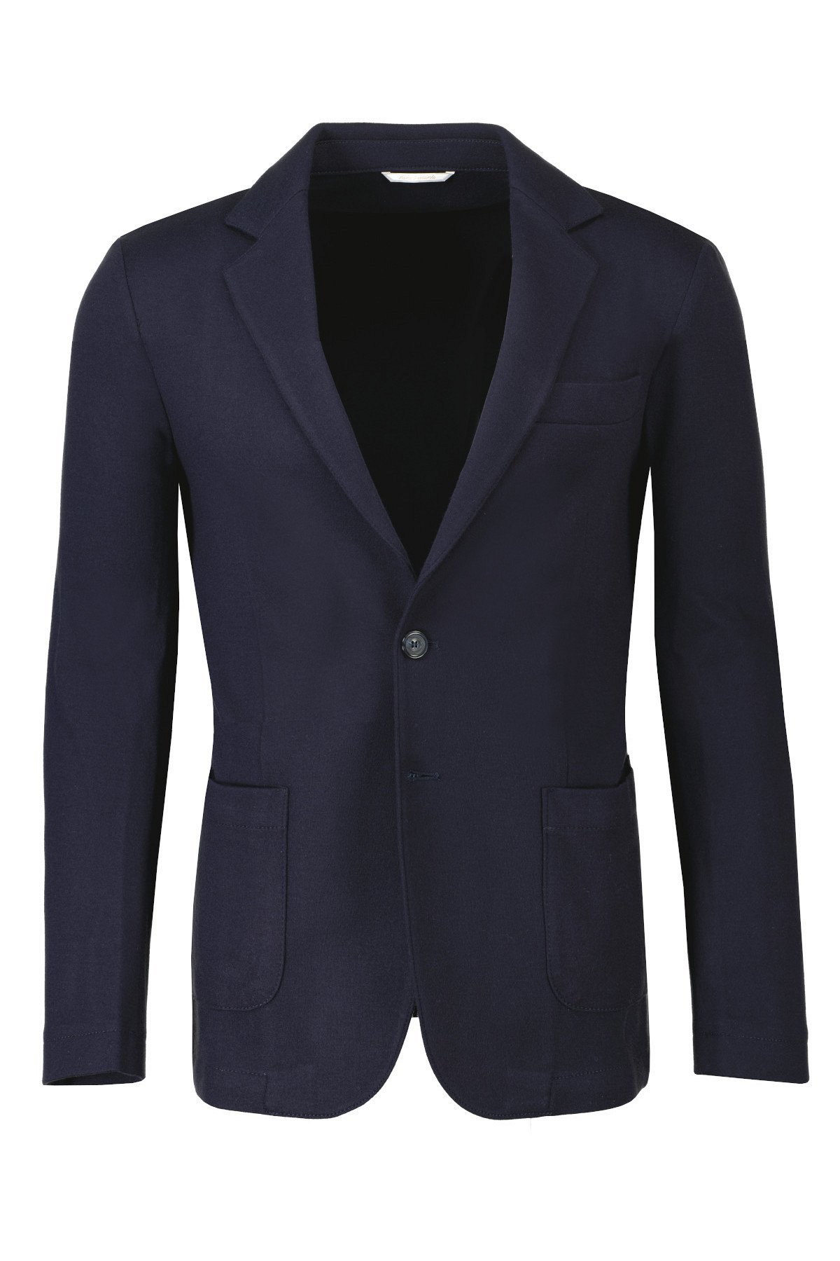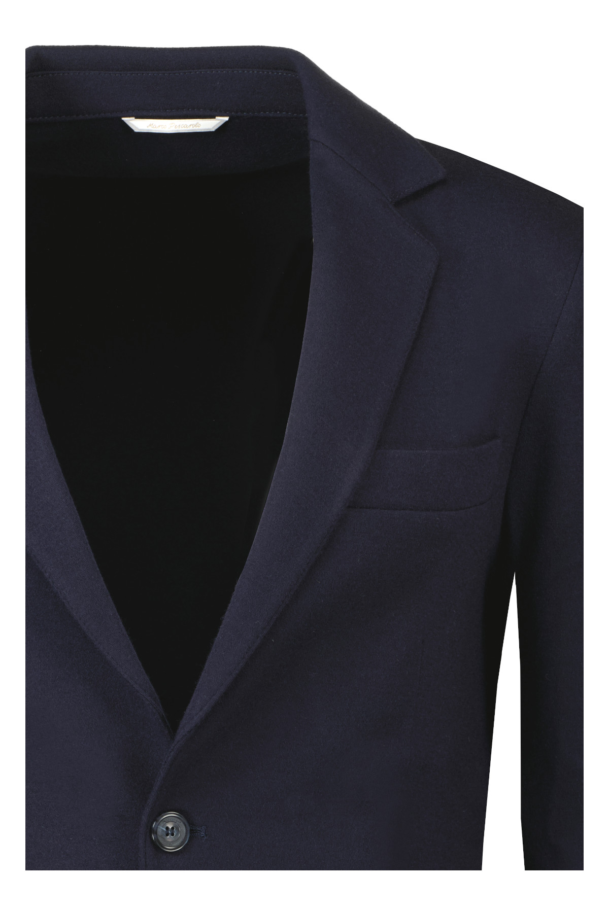 Donkerblauw colbert model Apollo van Marco Pescarolo. De Apollo is ongevoerd en een 2 knoopsluiting in wol-kasjmier kwaliteit.
