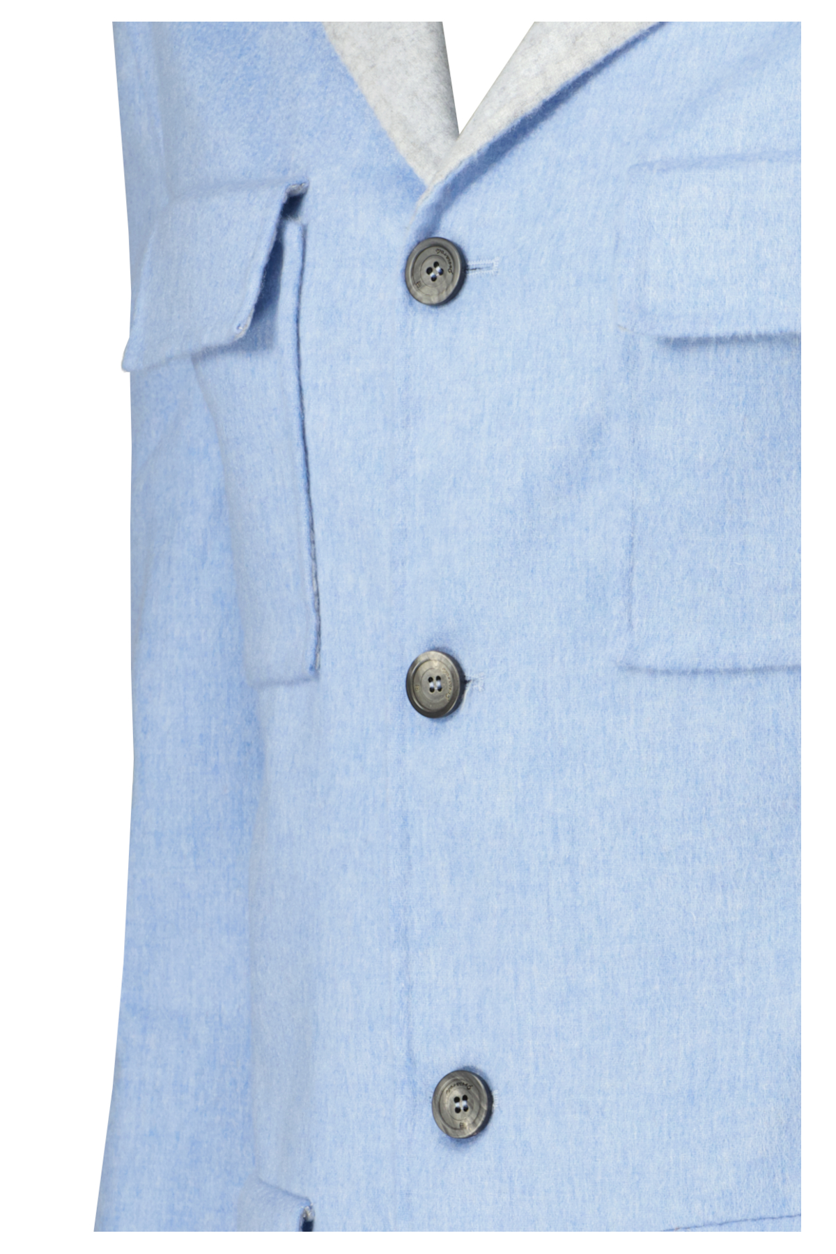 Lichtblauw 100% kasjmier overshirt model Bacco van Marco Pescarolo. Model heeft een ruimere pasvorm, knoopsluiting en 4 zakken op voorkant.