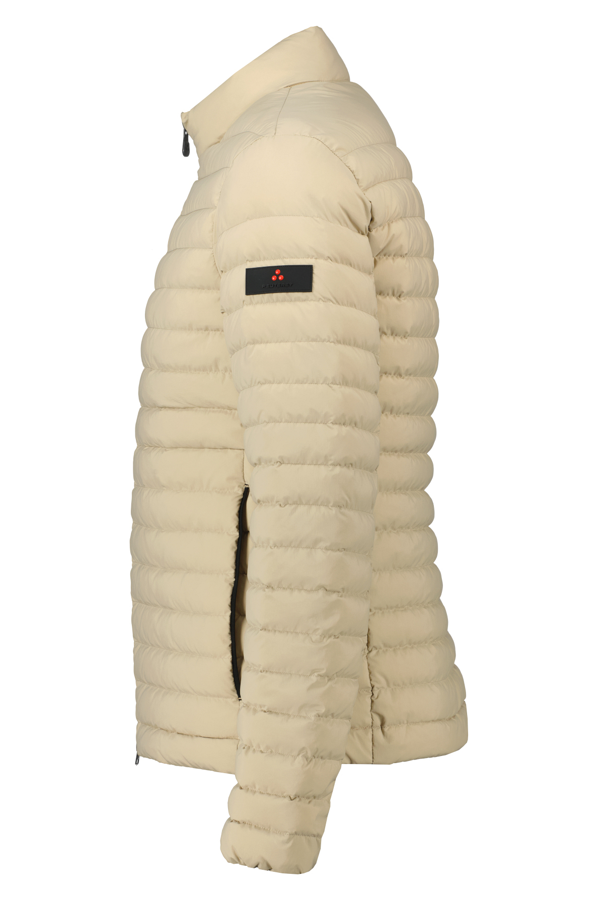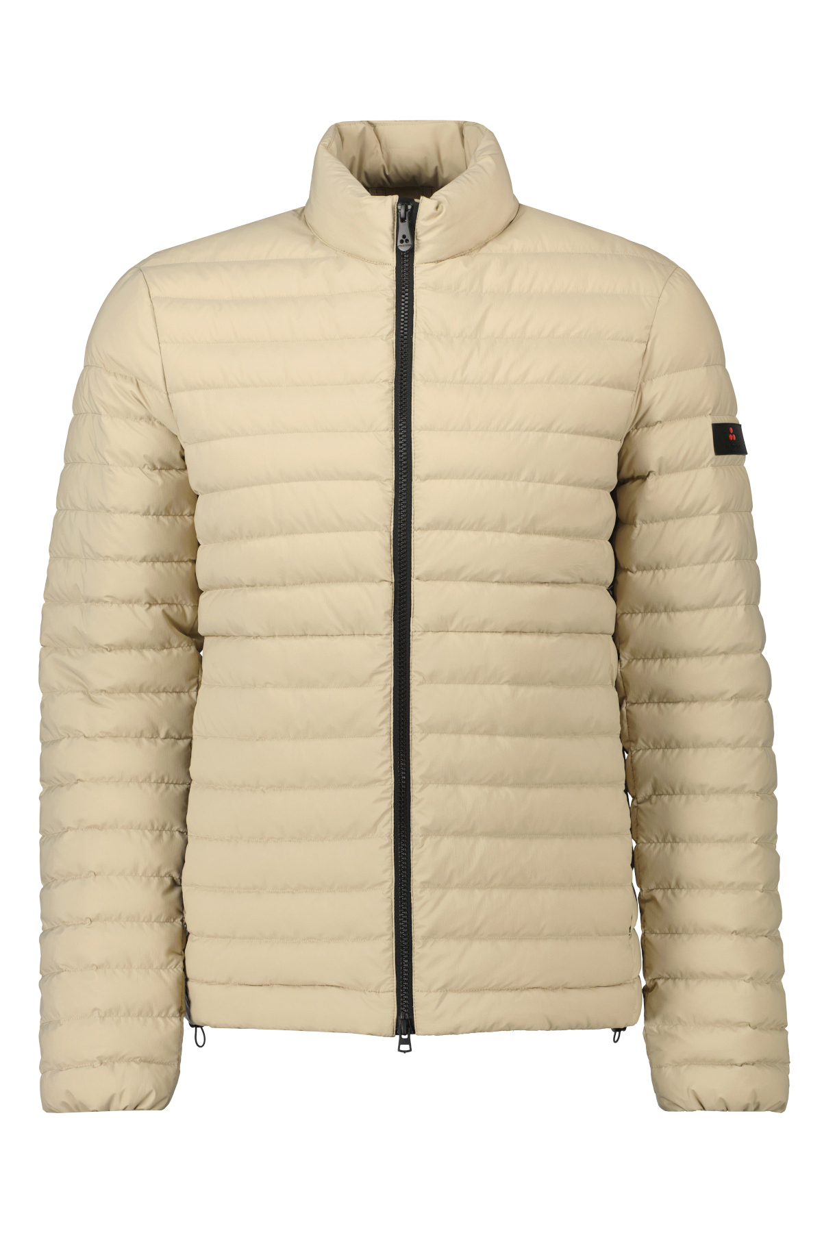 Donkerbeige jas model Flobots van Peuterey. Licht gewatteerde en gerecyclede donsjas gemaakt van ultralicht 20 denier nylon, met een gewicht van slechts 40 gram, met halfglanzende textuur. Hoge halslijn met aangebracht logolint, dubbele ritssluiting in contrasterende kleur, zijzakken. Vakkundig gemaakte sportkleding voor een dynamische en veelzijdige look. Waterdicht en donsdicht.