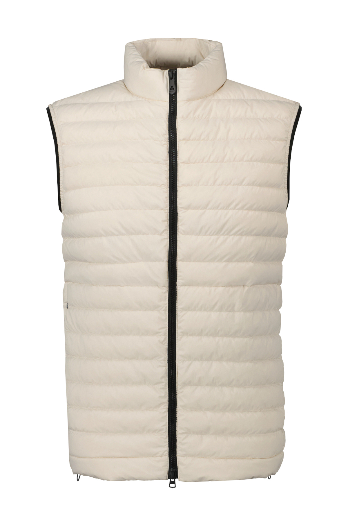 Lichtbeige bodywarmer voor heren van Peuterey. Licht gewatteerd PrimaLoft-vest gemaakt van ultralicht 20 denier nylon, met semi-glanzende textuur. Opstaande hals met aangebrachte logostrook, dual-pull, rits in contrasterende kleur en zijzakken met drukknopen. Vakkundig gemaakte sportkleding voor een dynamische en veelzijdige look, een kledingstuk dat alleen of onder een jas gedragen kan worden. Waterdicht en donsdicht.