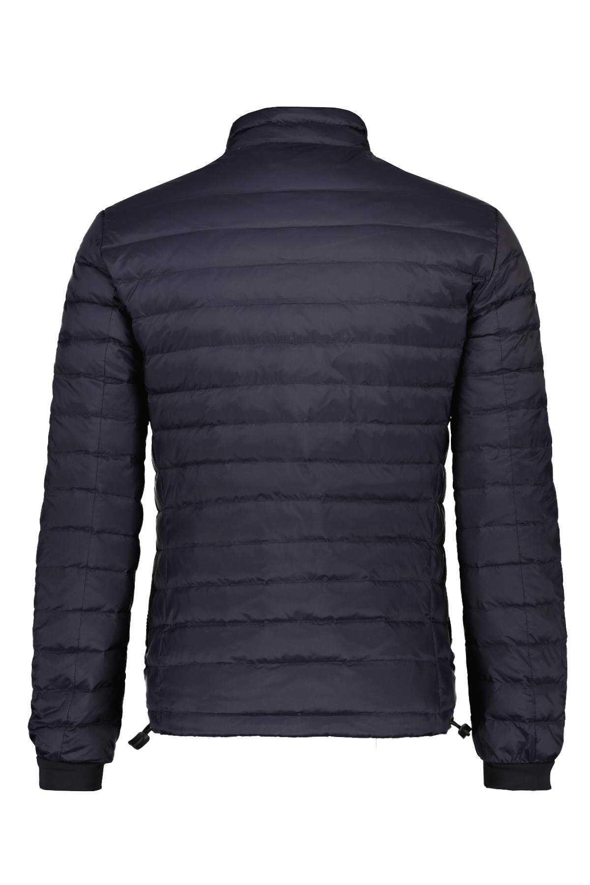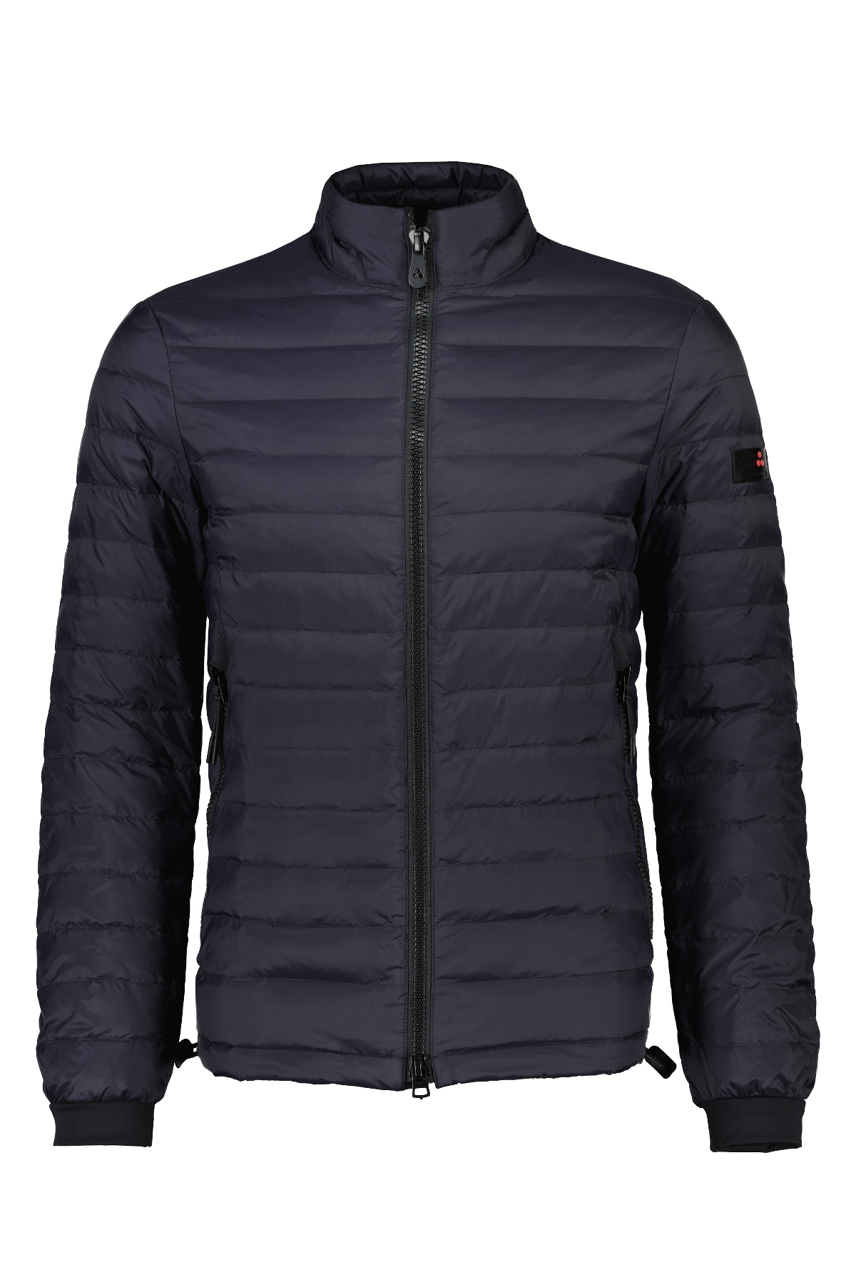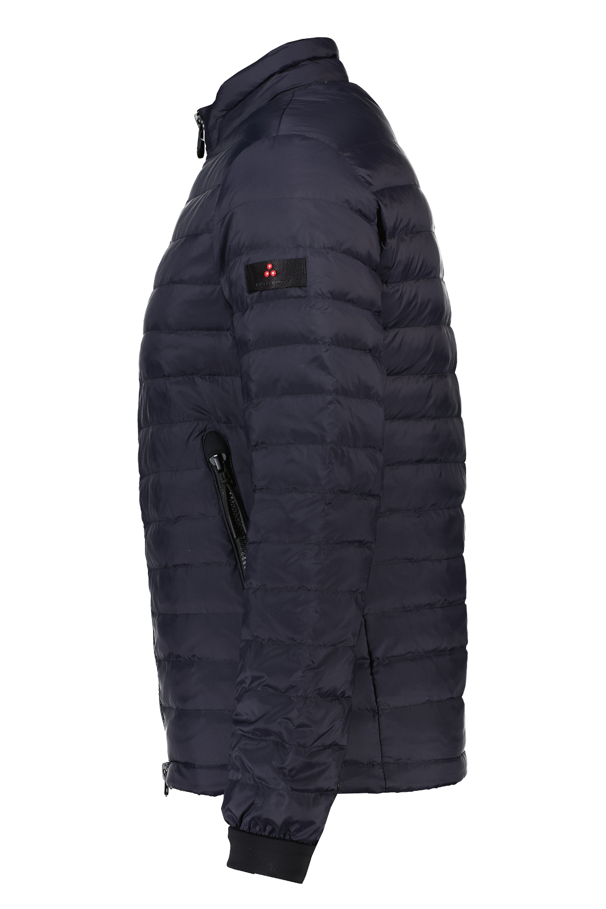 Blauwe jas model Flobots van Peuterey. Licht gewatteerde en gerecyclede donsjas gemaakt van ultralicht 20 denier nylon, met een gewicht van slechts 40 gram, met halfglanzende textuur. Hoge halslijn met aangebracht logolint, dubbele ritssluiting in contrasterende kleur, zijzakken. Vakkundig gemaakte sportkleding voor een dynamische en veelzijdige look. Waterdicht en donsdicht.
